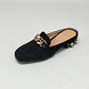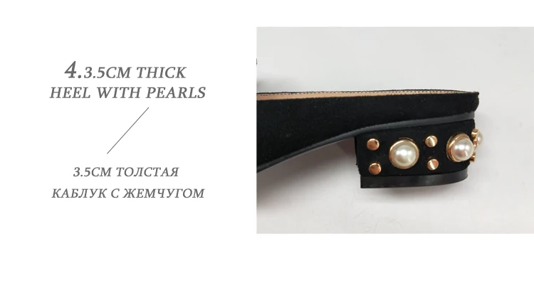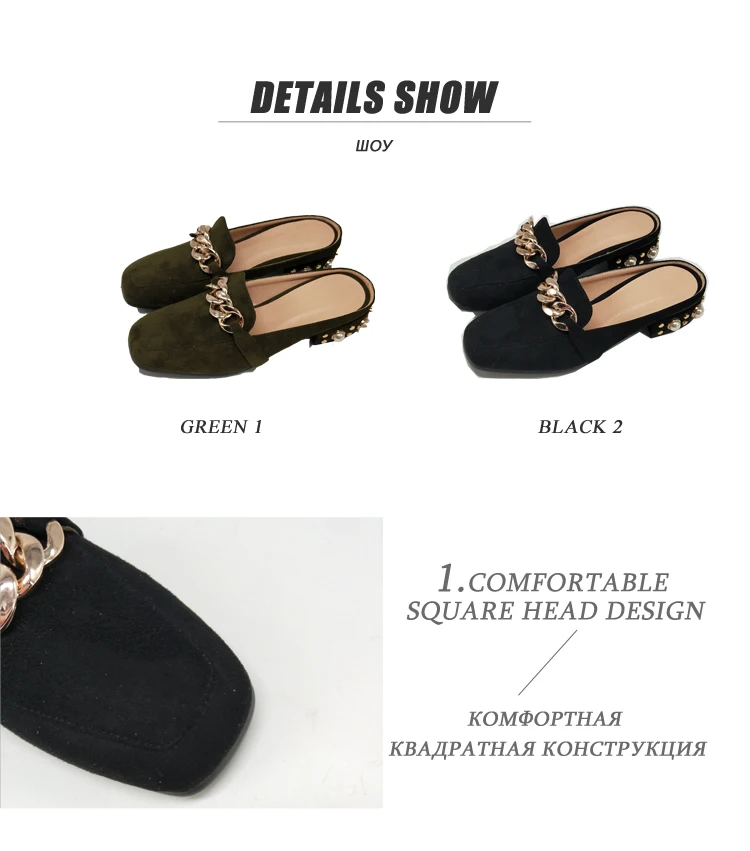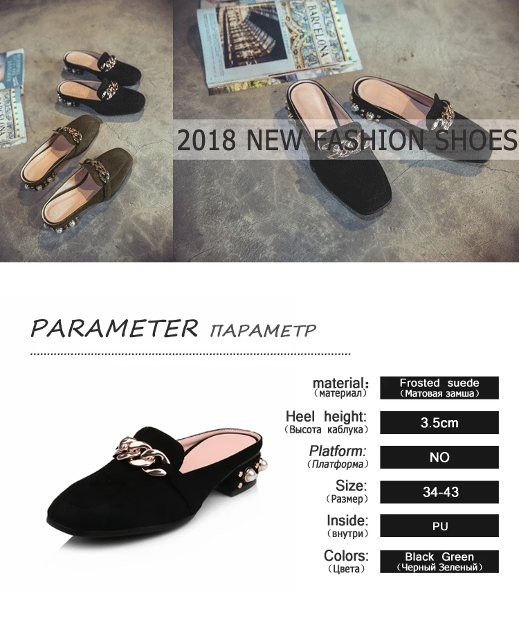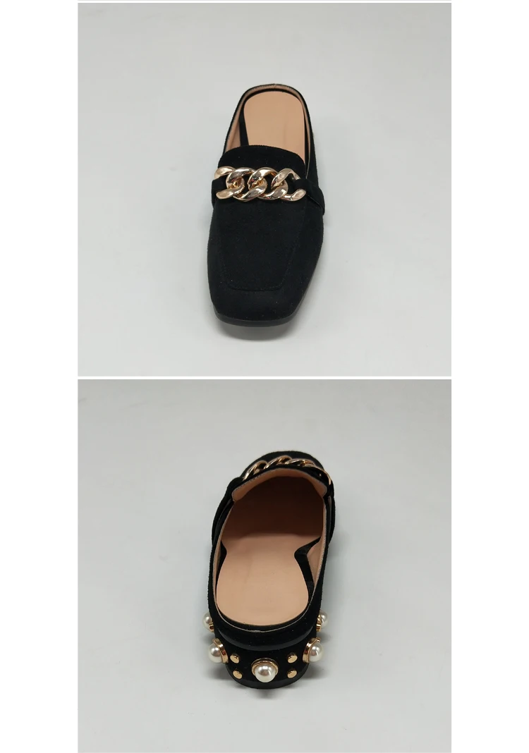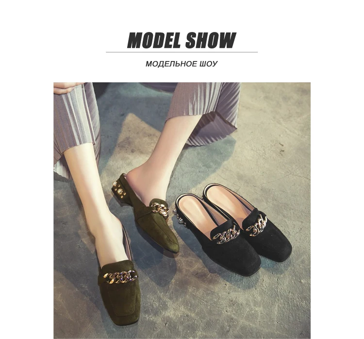 MNIXUAN Fashion new shoes mules women pumps handmade flock square toe thick medium heels 3cm with pearls slip on big size 34-43