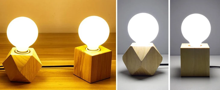 Modern retro mini solid wood polyhedron Table Lamps living room bedroom desk bedside EU plug switch line E27 Wooden tafel lamp