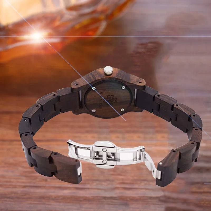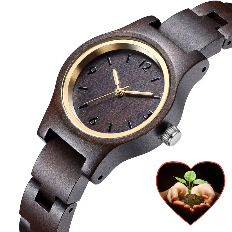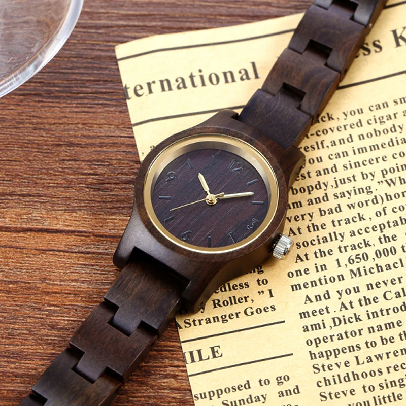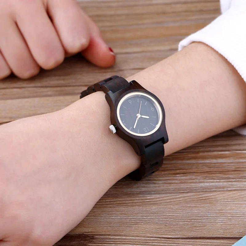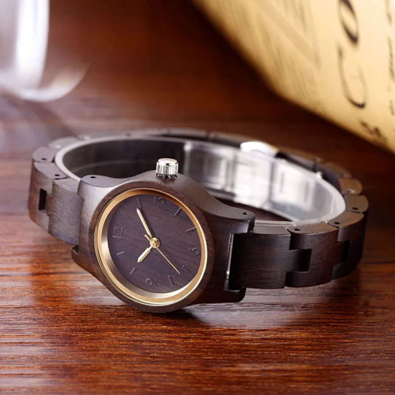Modern2018 Creative Designer Black Clock Wood Small Women Watches Wooden Bracelet Strap Quartz Ladies Fashion Wristwatch as Gift