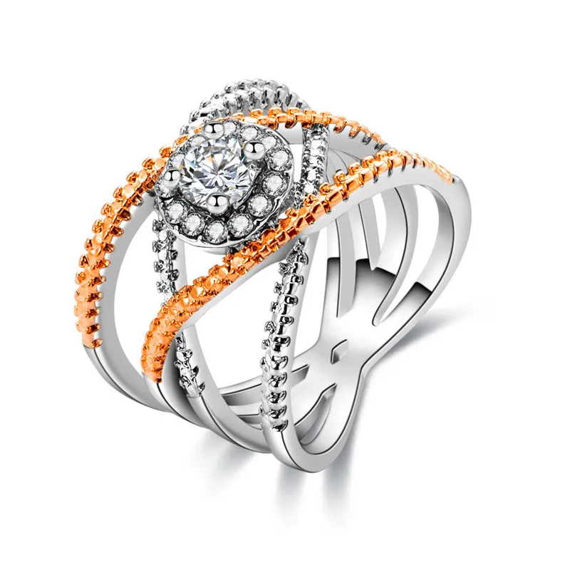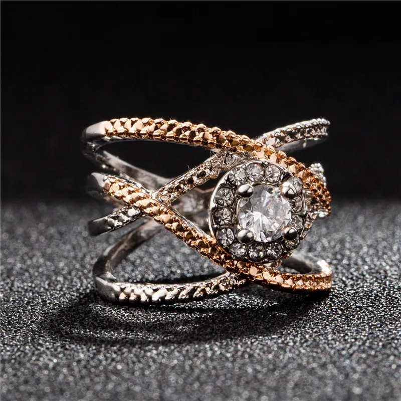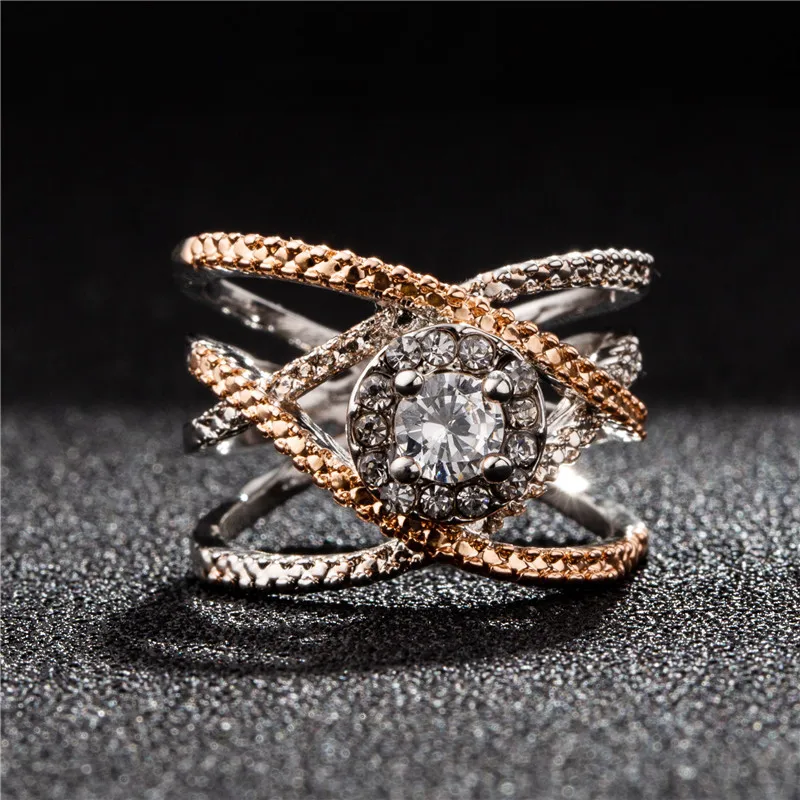 Modyle Fashion Rose Gold and White Gold Color Rings for Women Double Letter X Shape Ring Zirconia Micro Paved Women