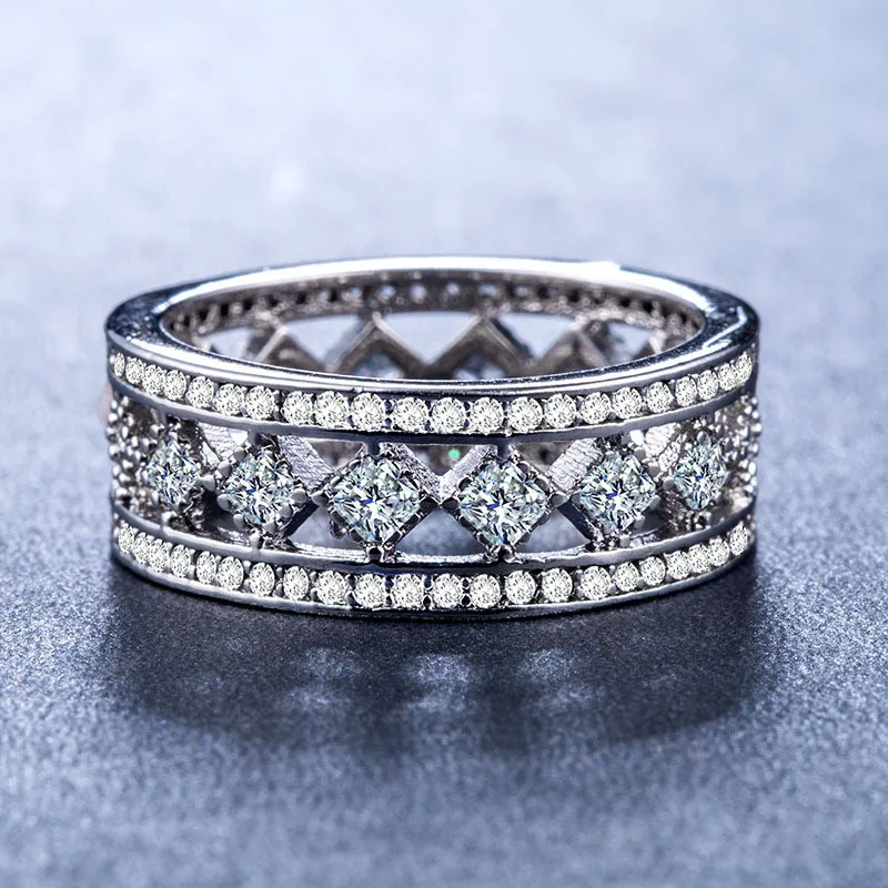 Modyle Hot Sale White Gold Color Square Vintage Fascination Clear CZ Big Ring For Women Luxury Fashion Jewelry