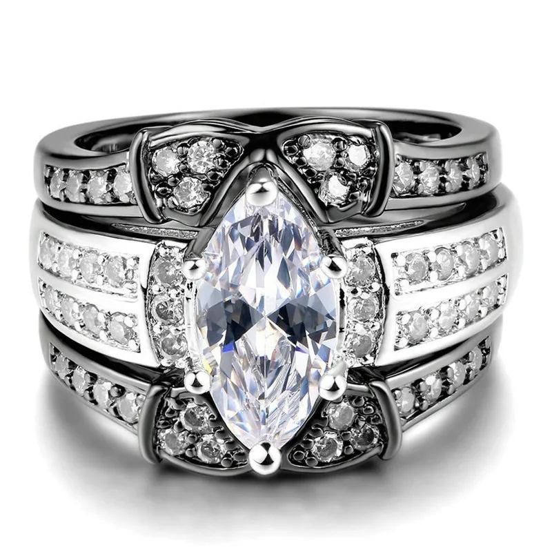 Modyle Luxury Female 3pcs/set White Round AAA Zircon Ring Set Fashion Silver Color Jewelry Promise Engagement Rings For Women