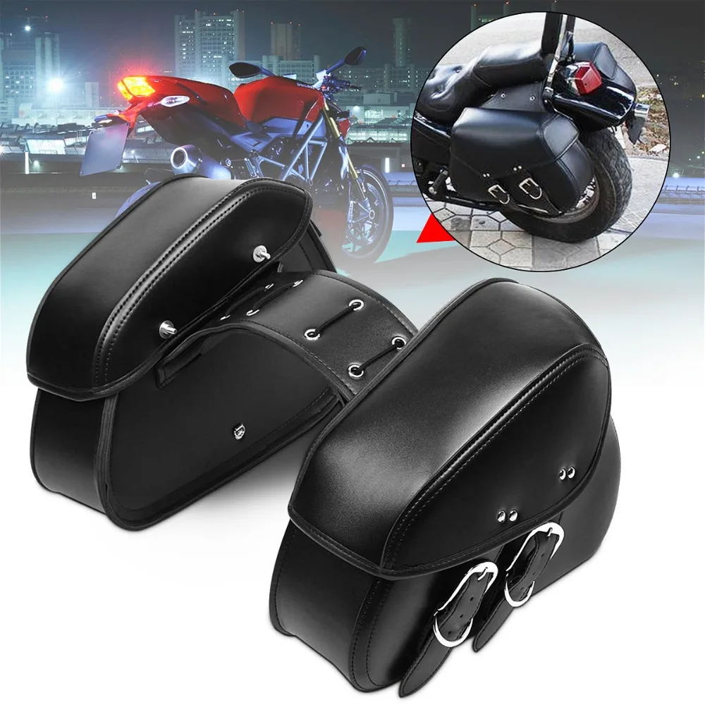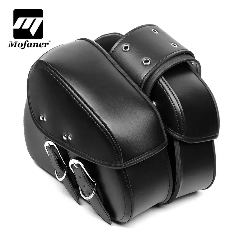 Mofaner Pair Black Retro Motorcycle Rear Tail Bag Saddle Bag PU Leather Storage Tool Bags For Harley-Davidson For Honda/Suzuki