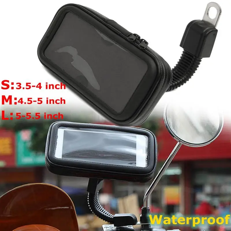 Mofaner Waterproof Motorcycle Phone Bag Mirror Mount Phone GPS Case Bag Pouch Holder For Scooter Bike Motorbike 3.5 To 5.5 Inch