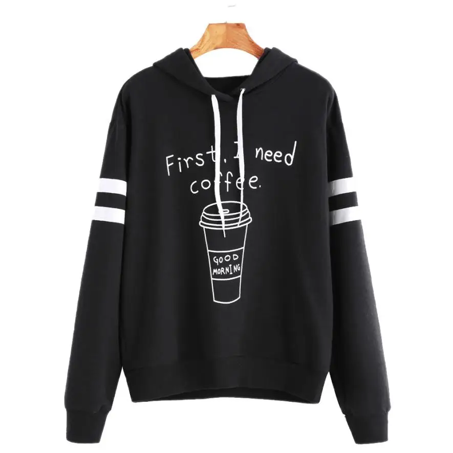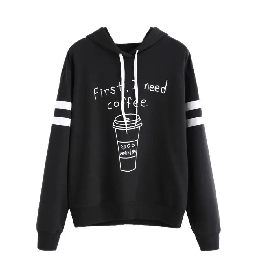 Womens Letter Long Sleeve Hoodie Sweatshirt Jumper Hooded Pullover Tops Blouse