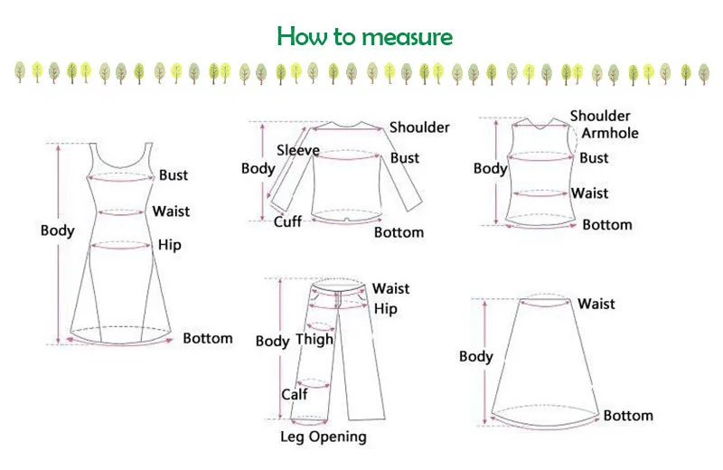 | Size:M | Bust:88-92cm/34.6-36.2″ | Waist:76cm/29.9″ | Hip:94cm/37.0″ | Length:86cm/33.9″ |
