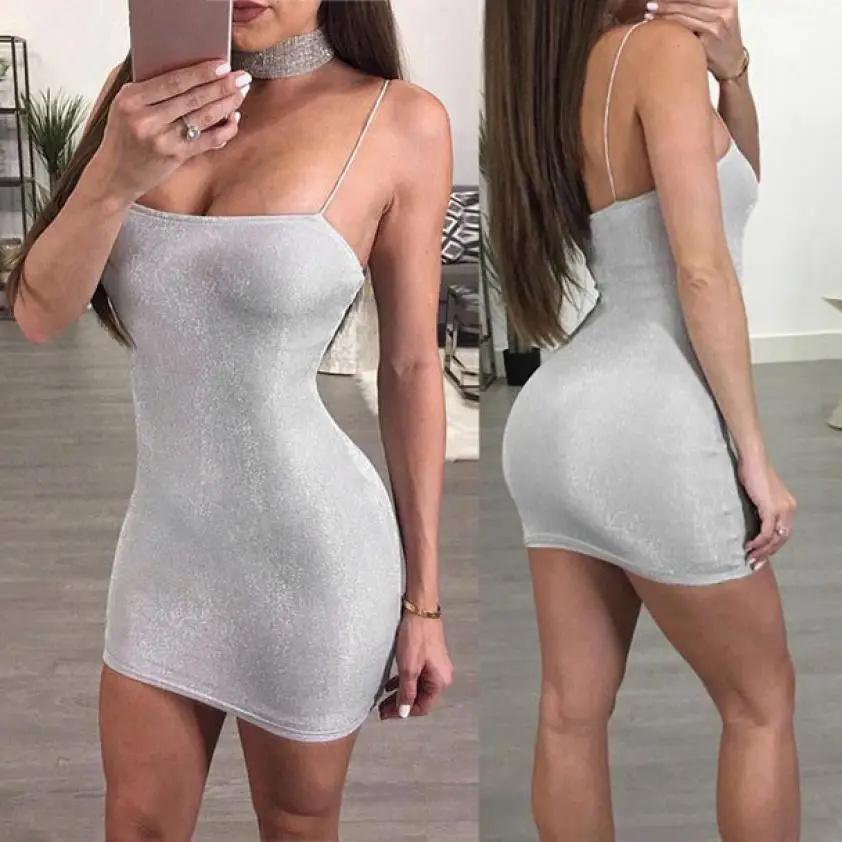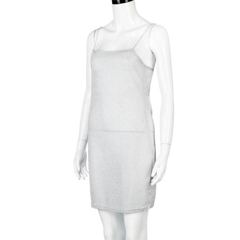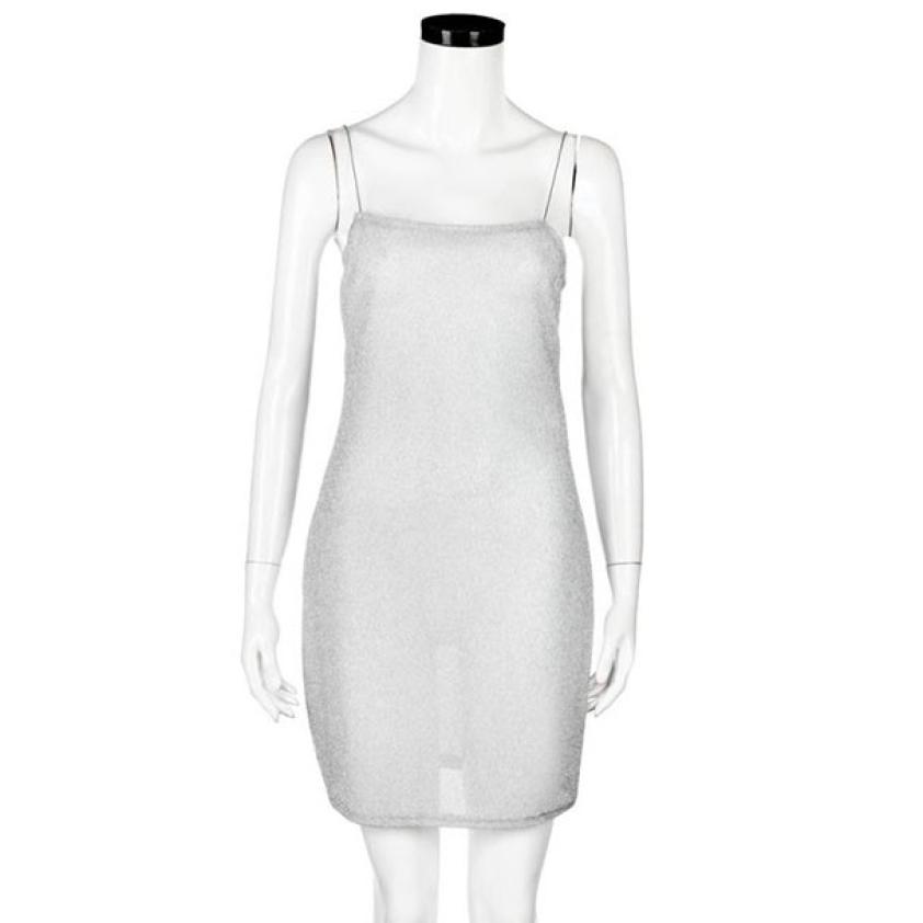 Women Sexy Sleeveless Slim Elastic Beach Tinsel Party Evening Camisole Dress