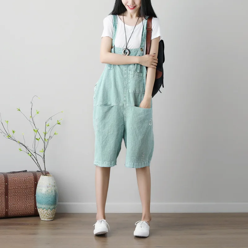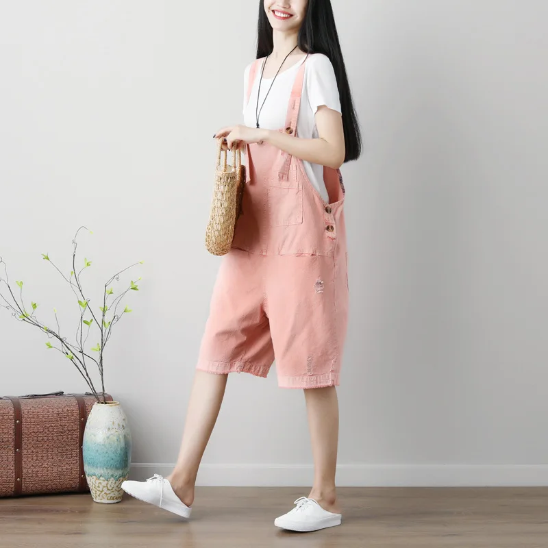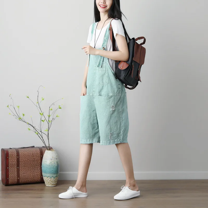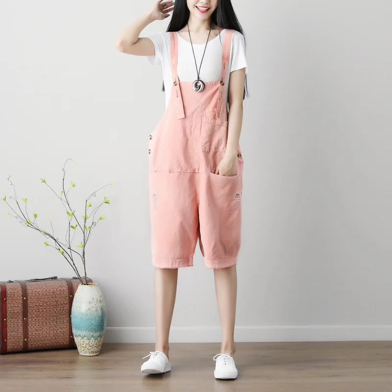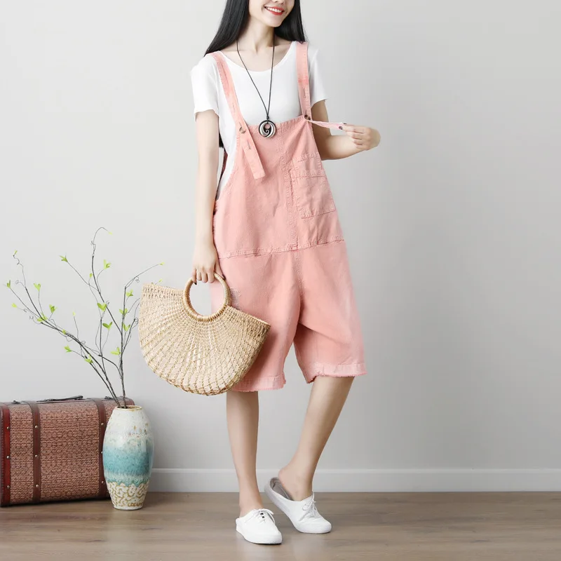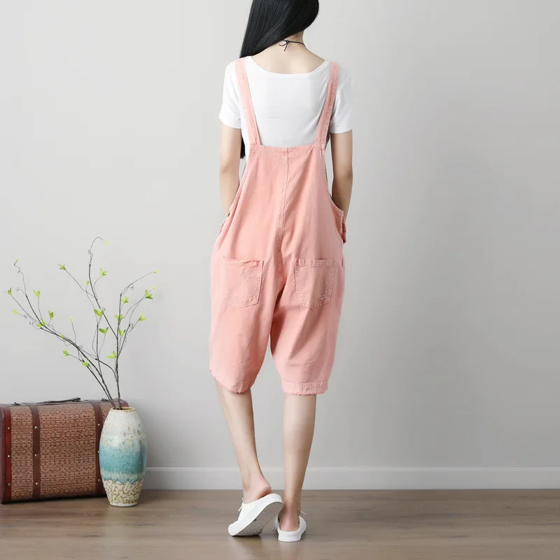 Mori Girl Baggy Jumpsuit Solid Color Bib Wide leg pants Knee-length Harem Rompers Hip-Hop Overalls Suspenders Trousers YT227-1