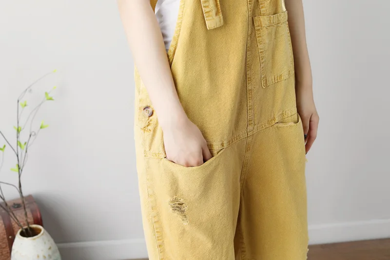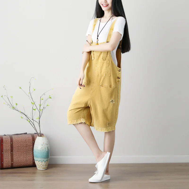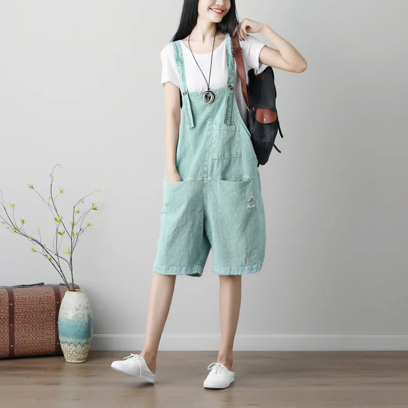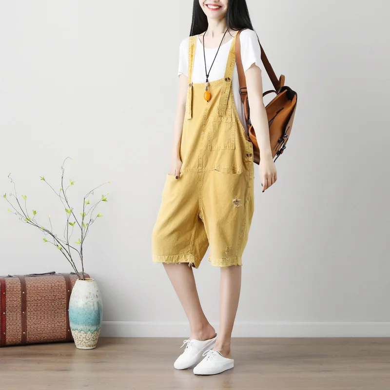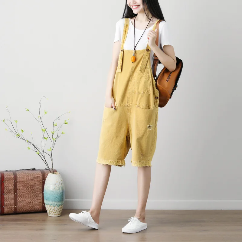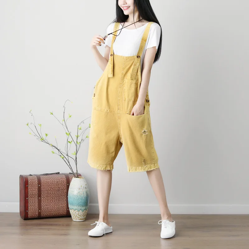 Mori Girl Baggy Jumpsuit Solid Color Bib Wide leg pants Knee-length Harem Rompers Hip-Hop Overalls Suspenders Trousers YT227-1