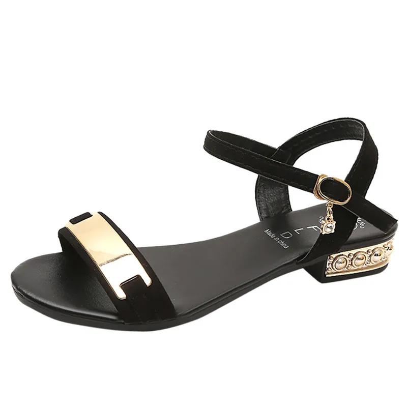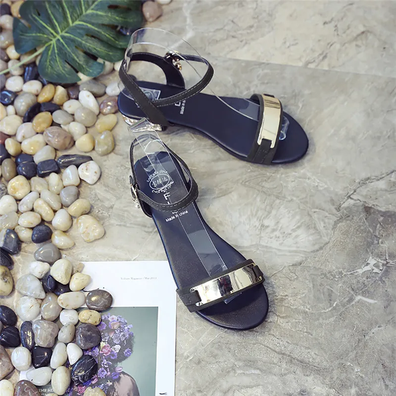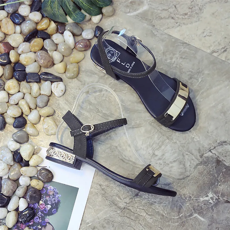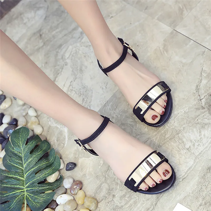 Most Popular Women Low Heel Anti Skidding Beach Cross Strap Shoes Sandals Peep-toe Sandals Ankle Strap Open Toe Flats Sandles