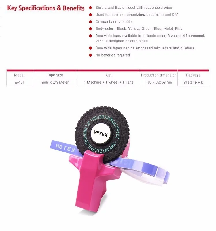 MoTeX Label Printer Mini DIY Hand Decorative Tape Manual Typewriter With a roll of black tape Free shipping