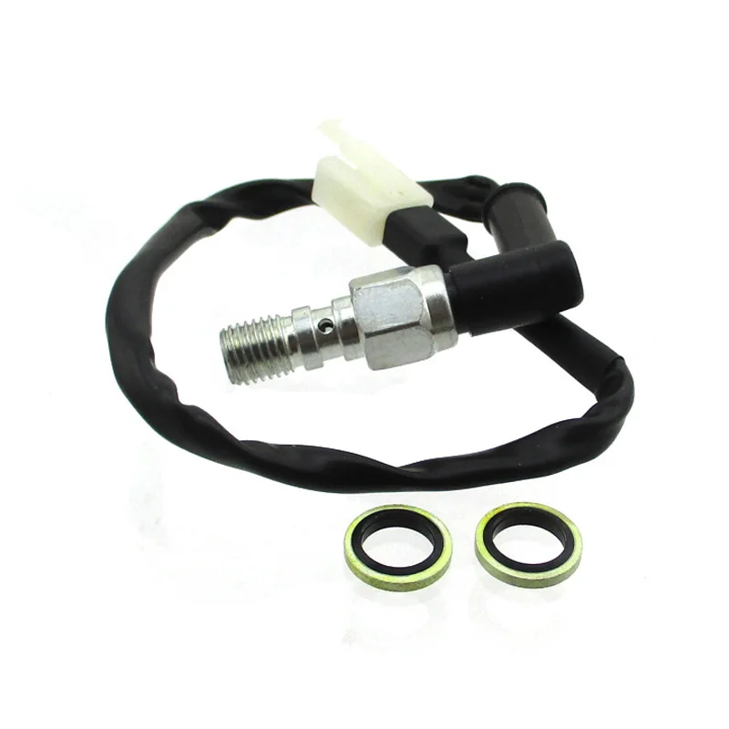 ***This switch can be used on Nissin hydraulic brake systems or any hydraulic brake system that has a banjo bolt with a M10 x 1.25mm thread pitch.Please note that you may need to modify the wiring connection.
