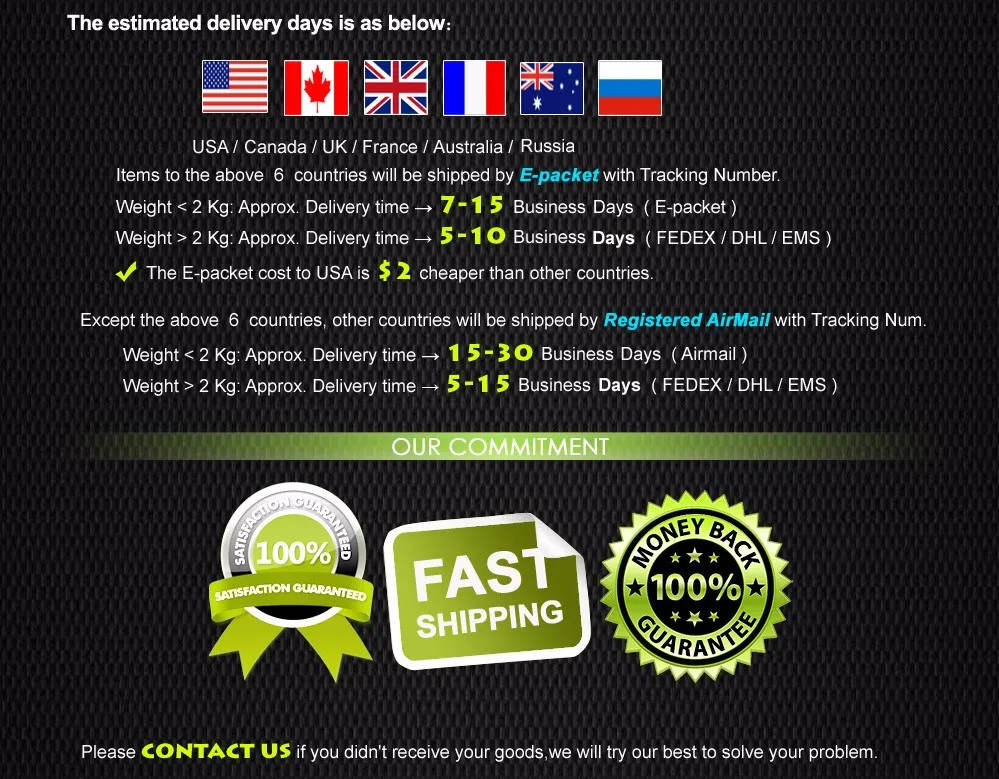*You can submit refund requests within 15 days after the guaranteed period for delivery (45 days) has expired. You can do it by sending a message on Contact Us page