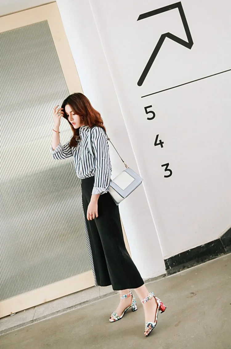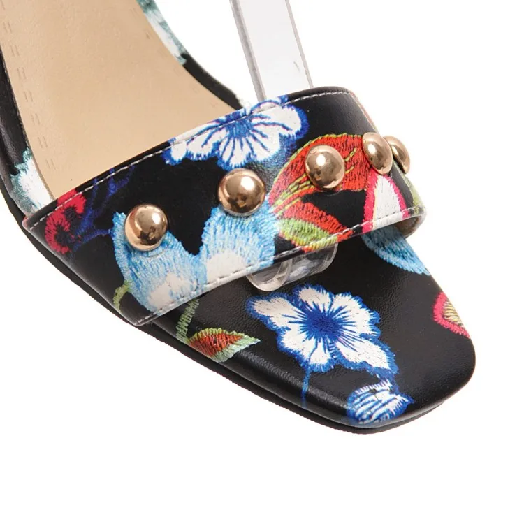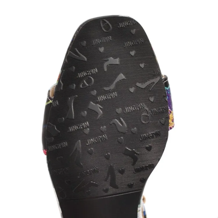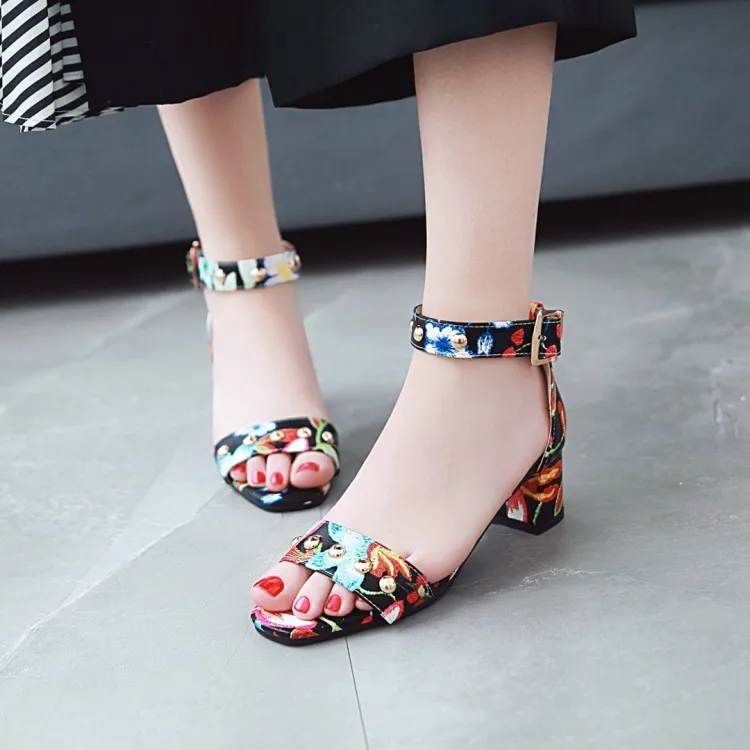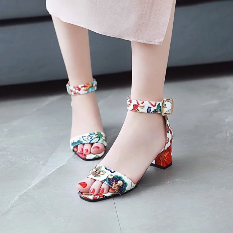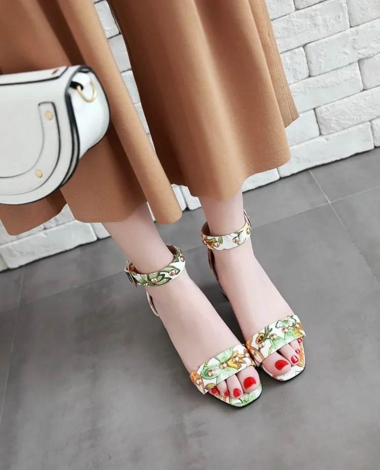 Ms thick heel sandals women 2018 summer comfortable med heels open toe printing fashion pumps shoes woman casual sandalias mujer