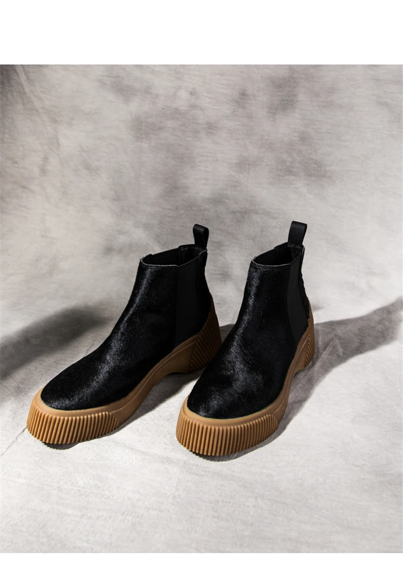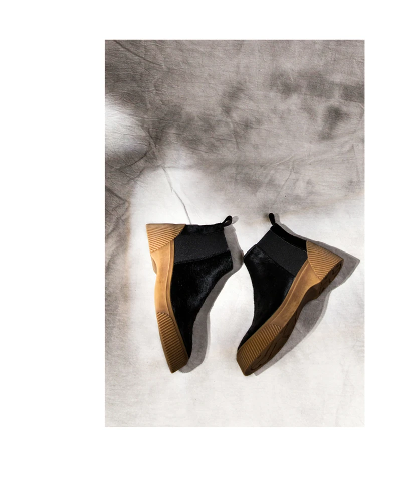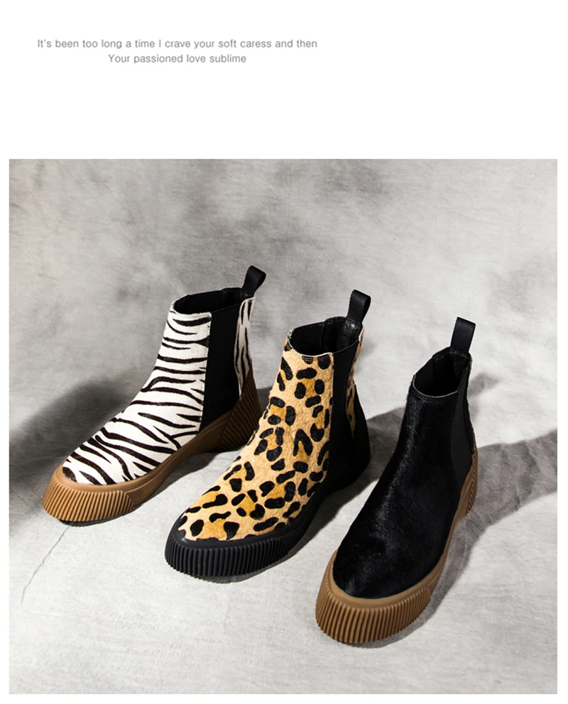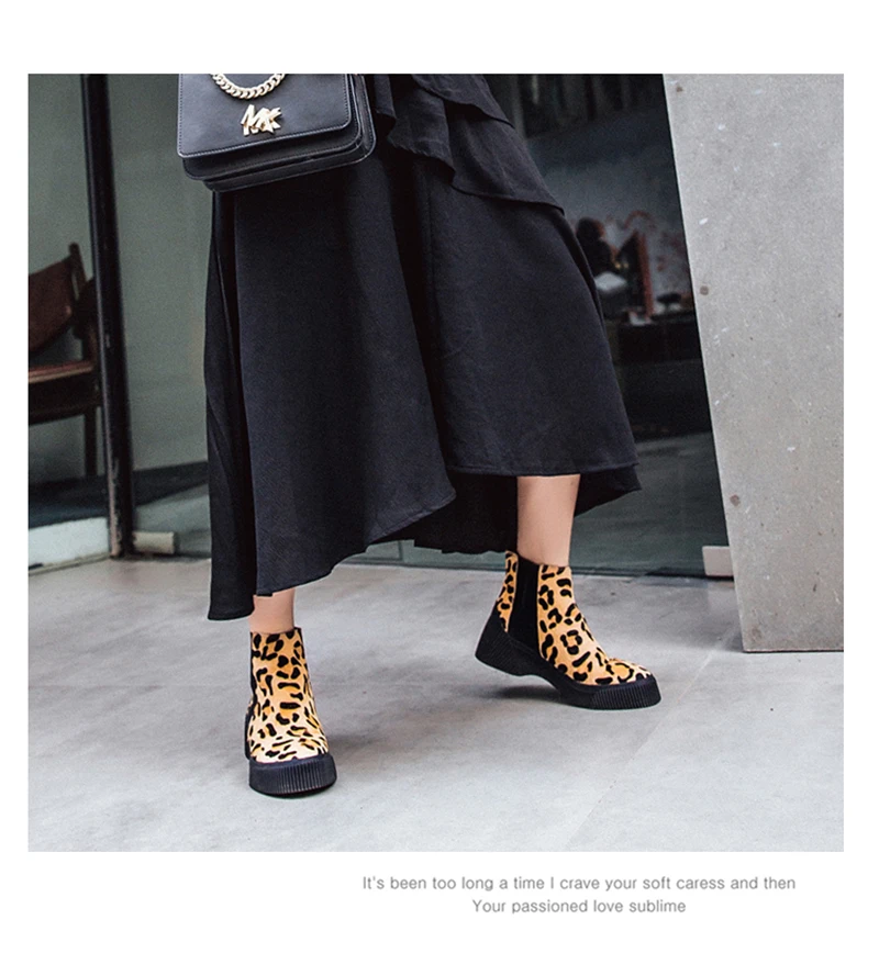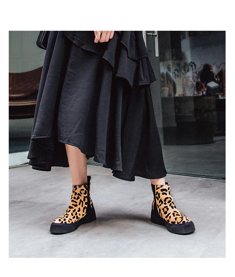 MSSTOR Casual Fashion Leopard Shoes Round Toe Black Boots Sexy Horse Hair Autumn Winter Horse Boot Wedge Ankle Boots Women 5CM
