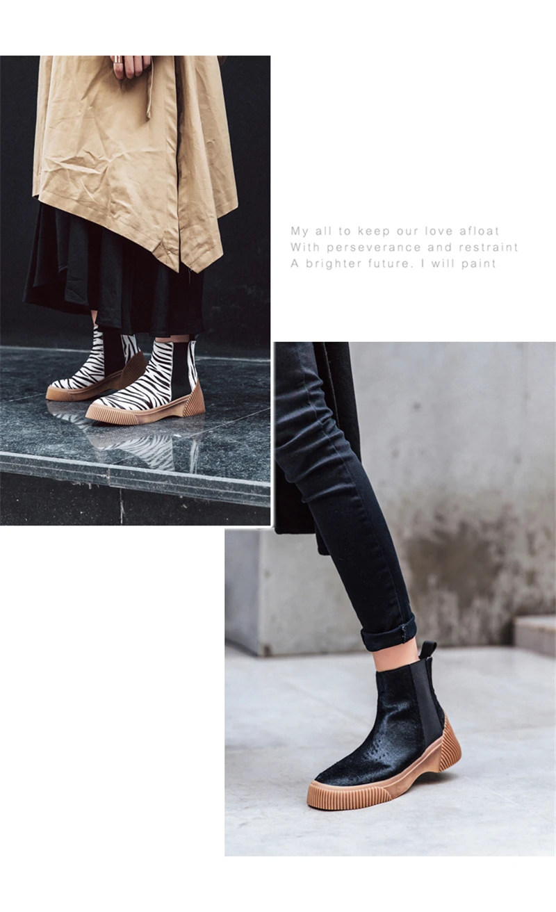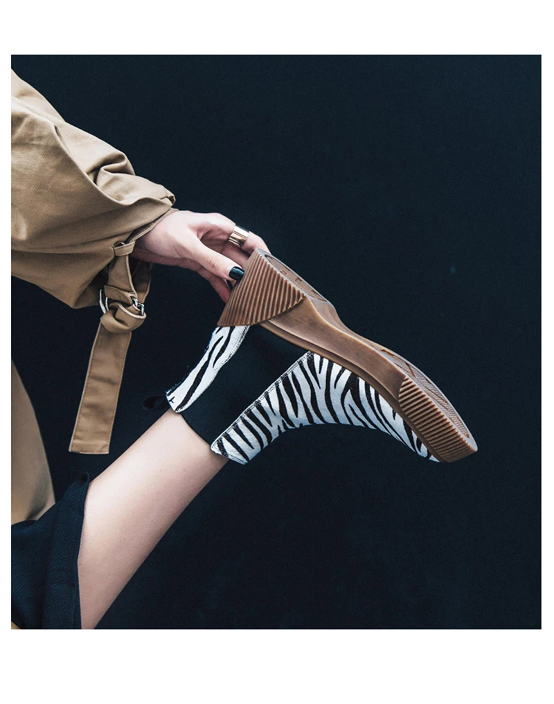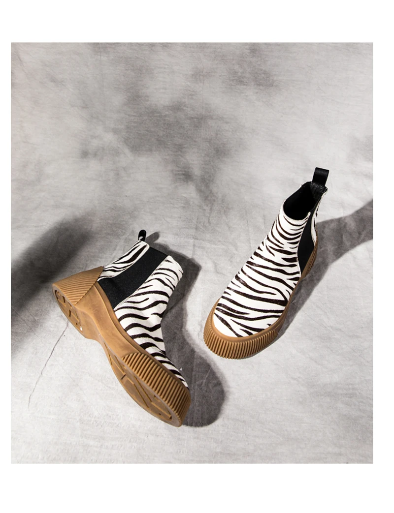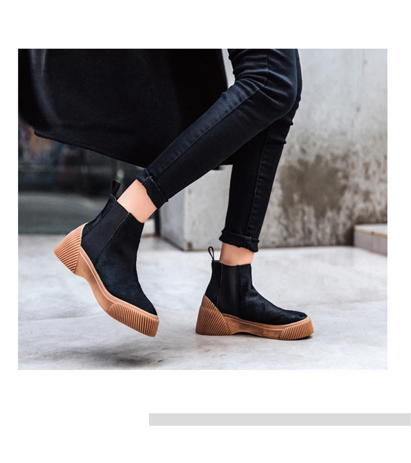 MSSTOR Casual Fashion Leopard Shoes Round Toe Black Boots Sexy Horse Hair Autumn Winter Horse Boot Wedge Ankle Boots Women 5CM