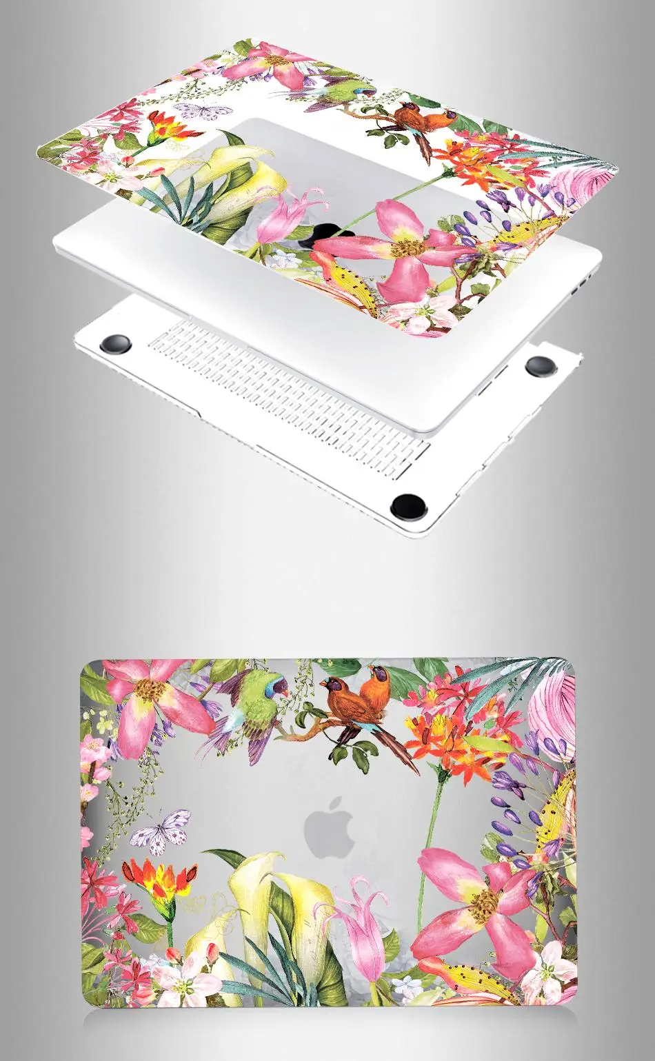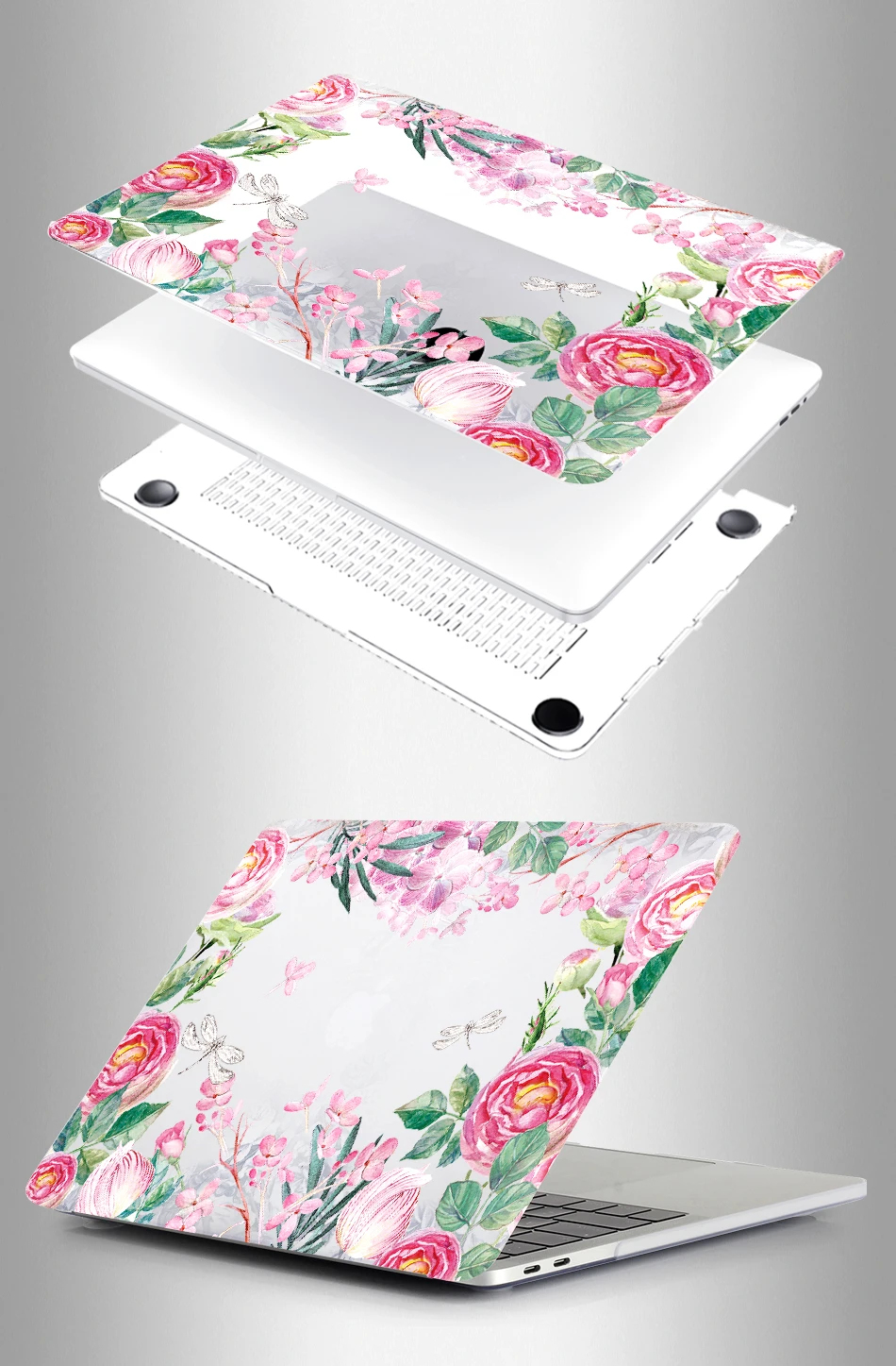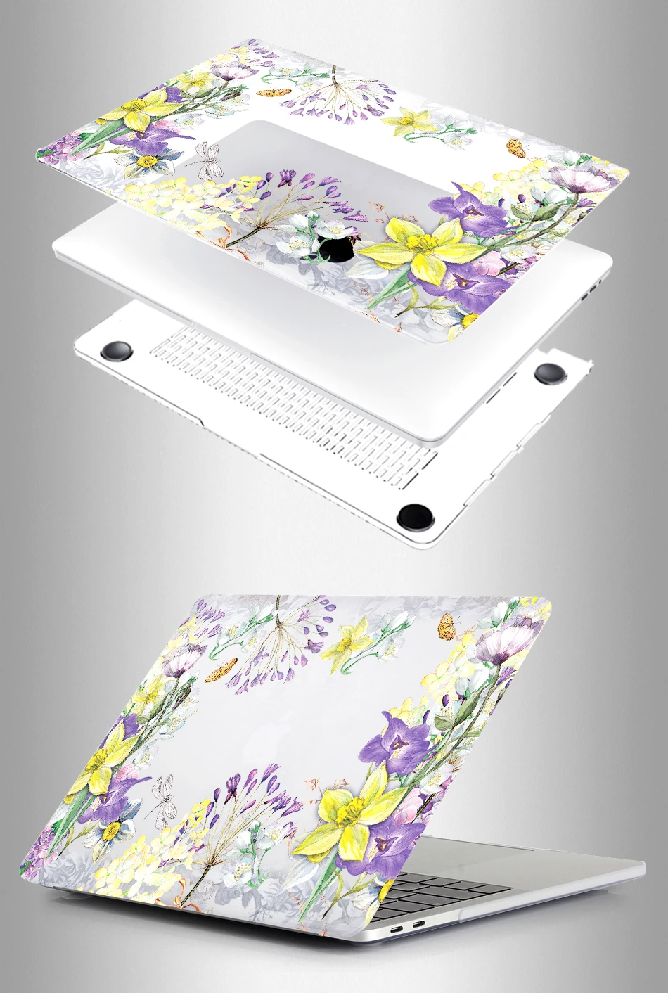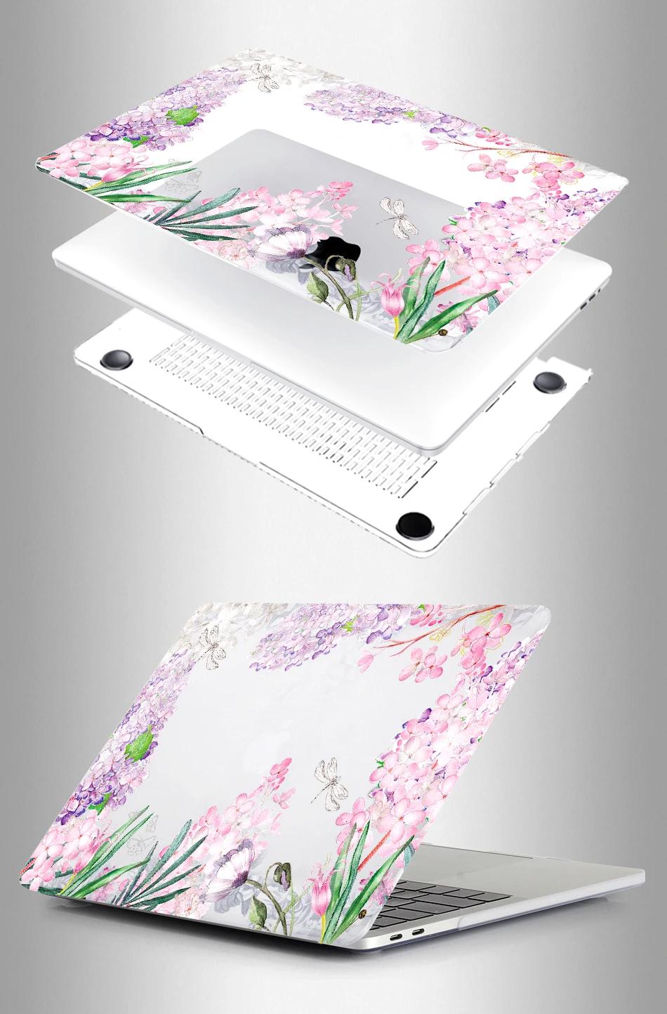 — Hard Plastic crystal Print Top Case and Clear Bottom Covers.