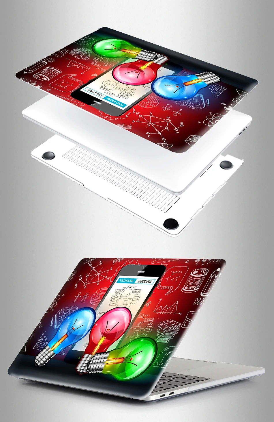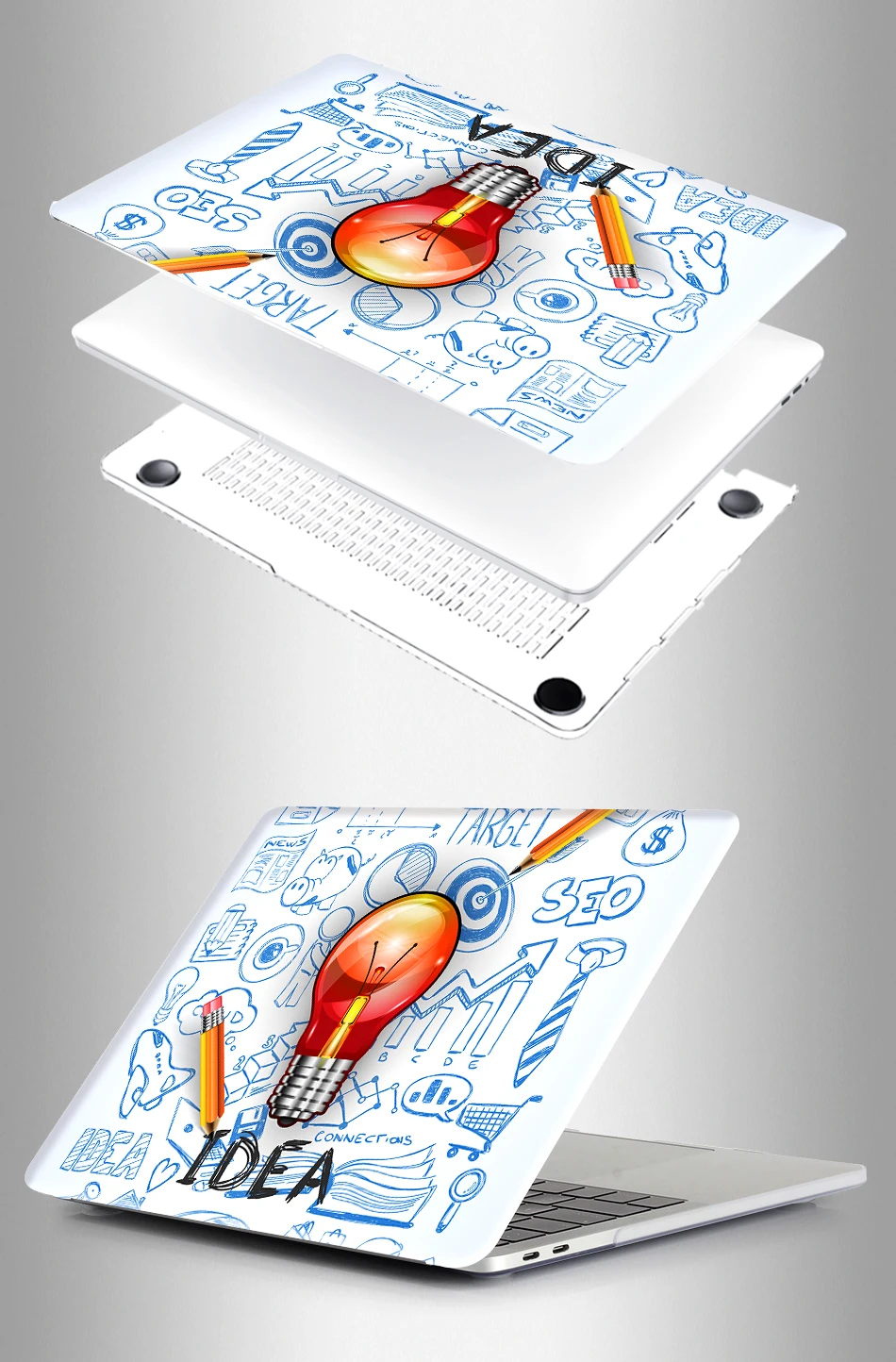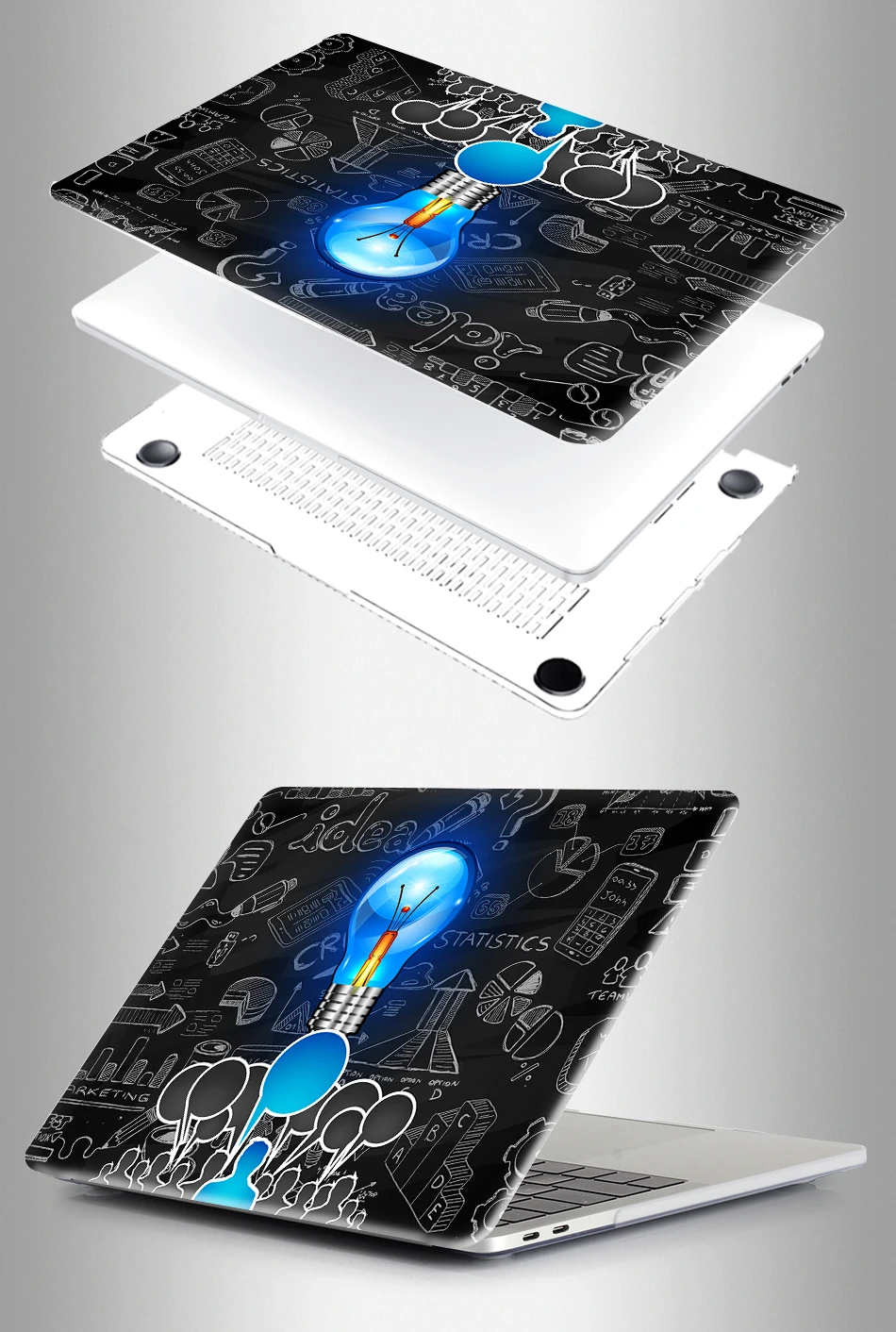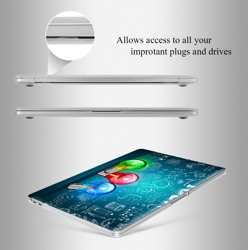 — Hard Plastic crystal Print Top Case and Clear Bottom Covers.