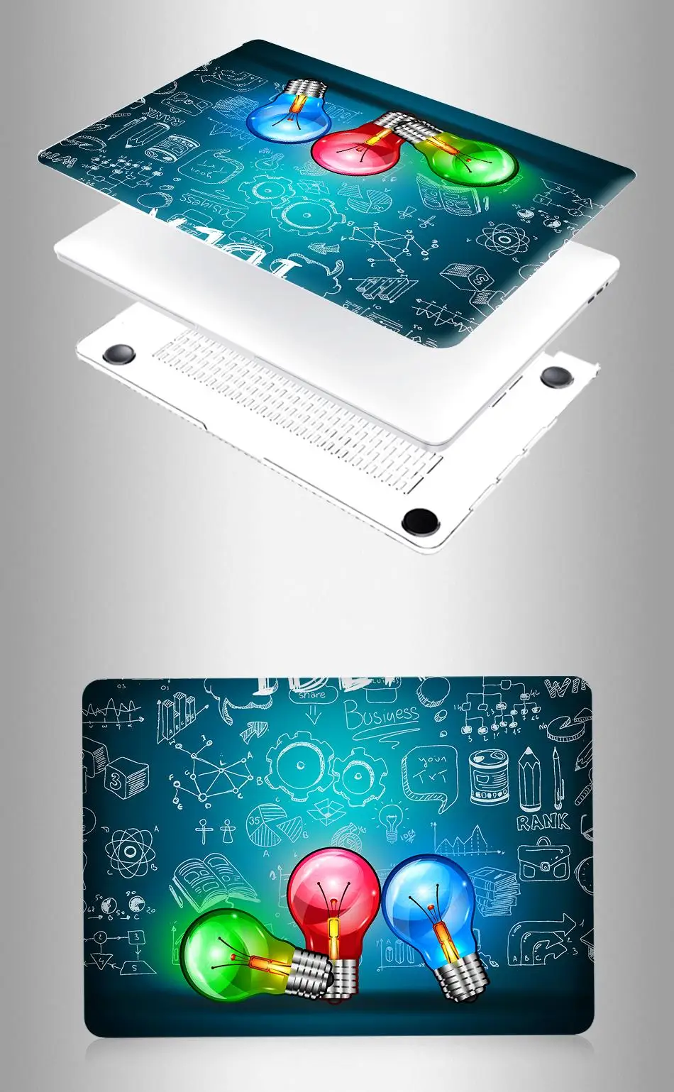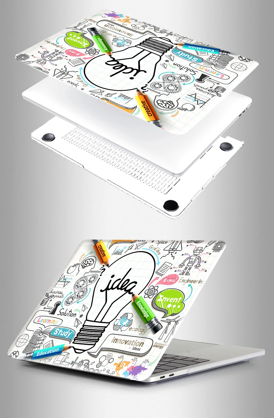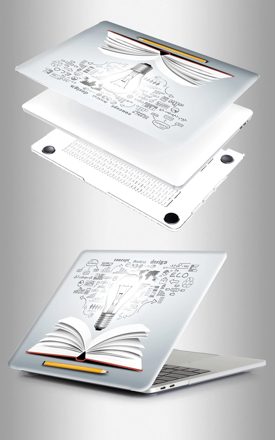 — Hard Plastic crystal Print Top Case and Clear Bottom Covers.