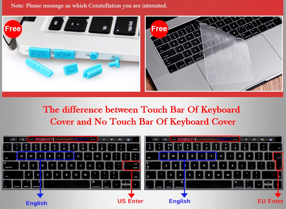 Note:Keyboard Cover have EU or US version,please contact us , you need to which version. If not,we will send US version.