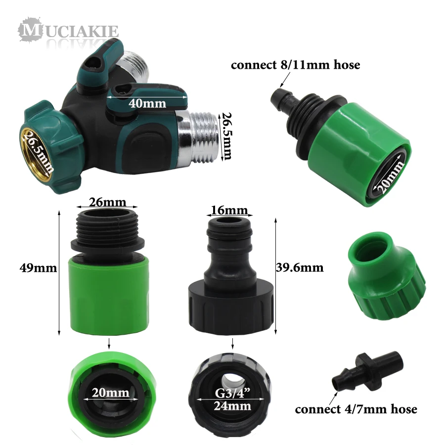 Name: MUCIAKIE 1PC Water Kits of 3/4″ Male Thread Valve Switch with 4mm 8mm Hose Coupling Adapter