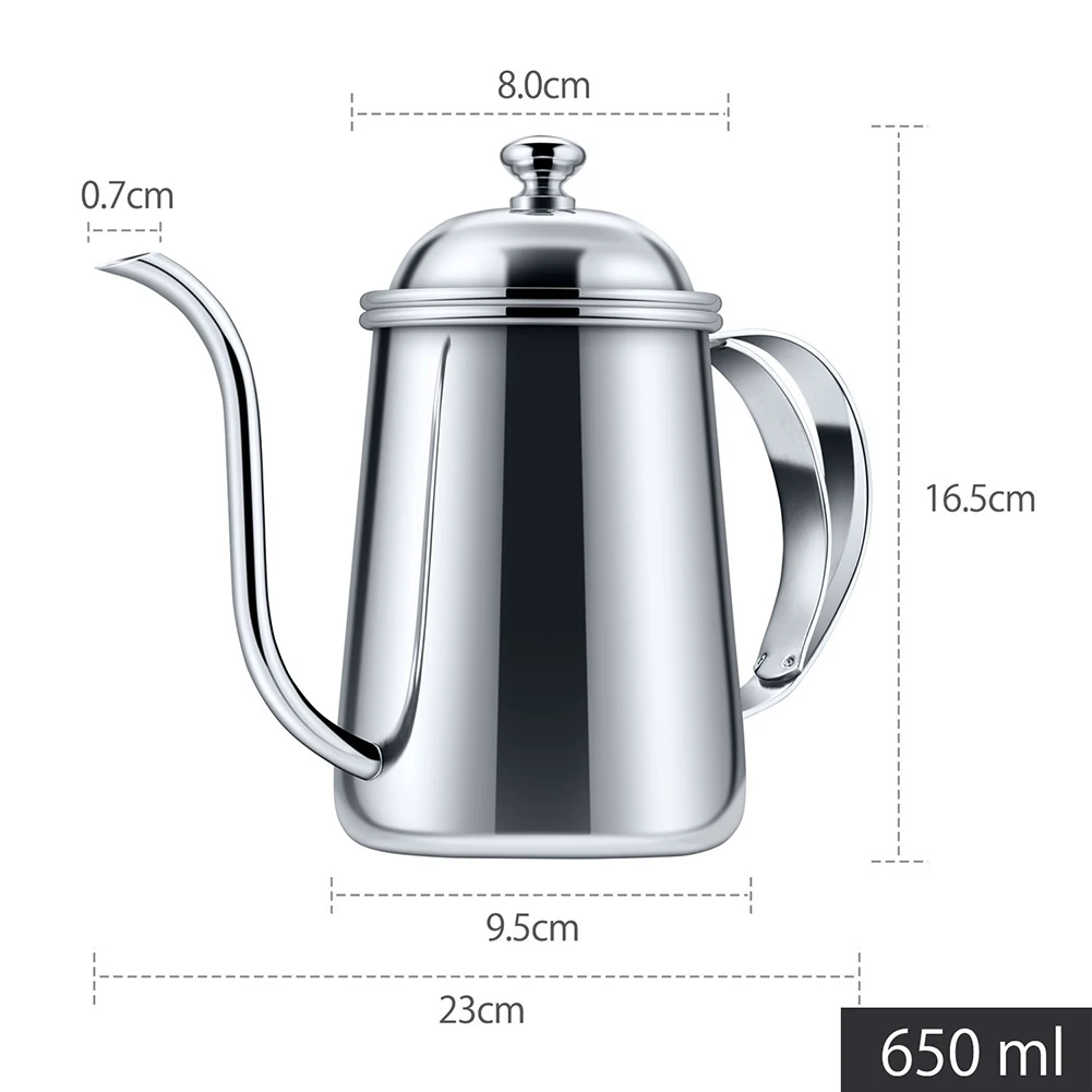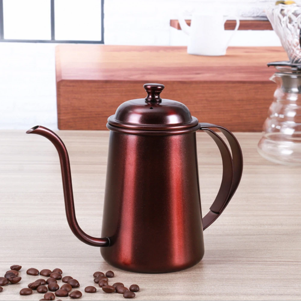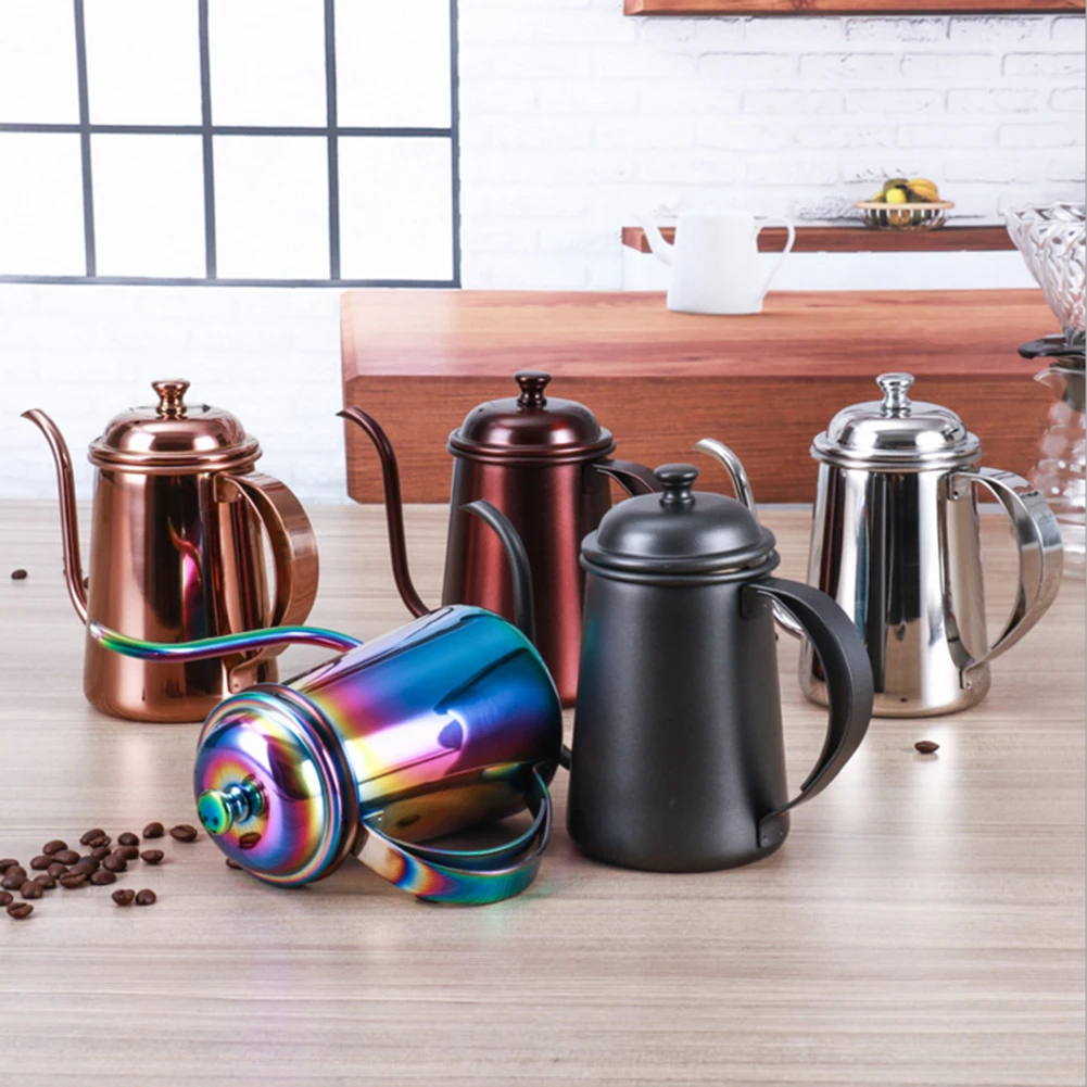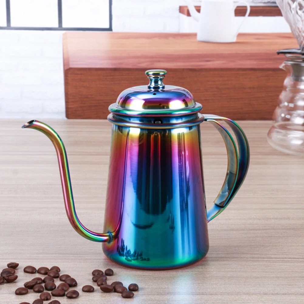 Multi Colors 650ML Hight Quality Long Mouth Hand Flush Thin Mouth Pot Stainless Steel Dripping Coffee Filter Teapot Court Pot