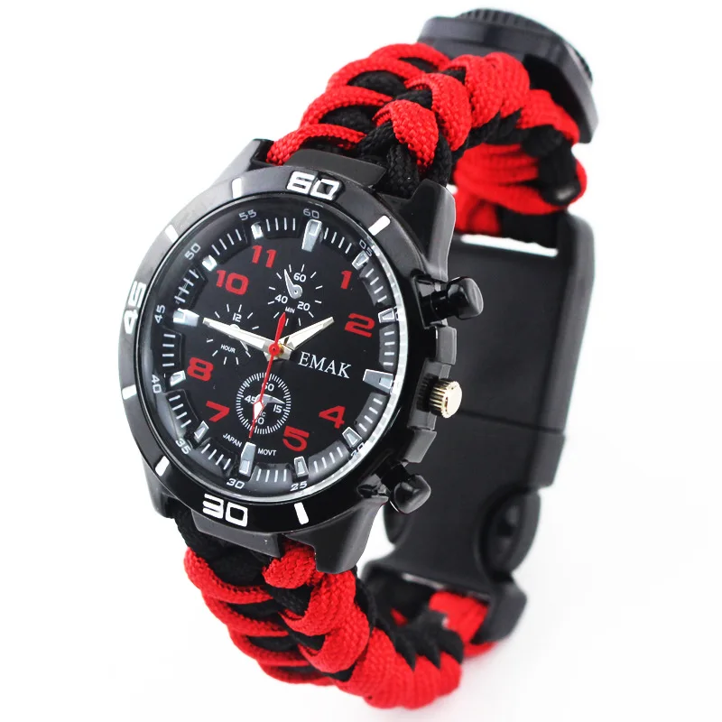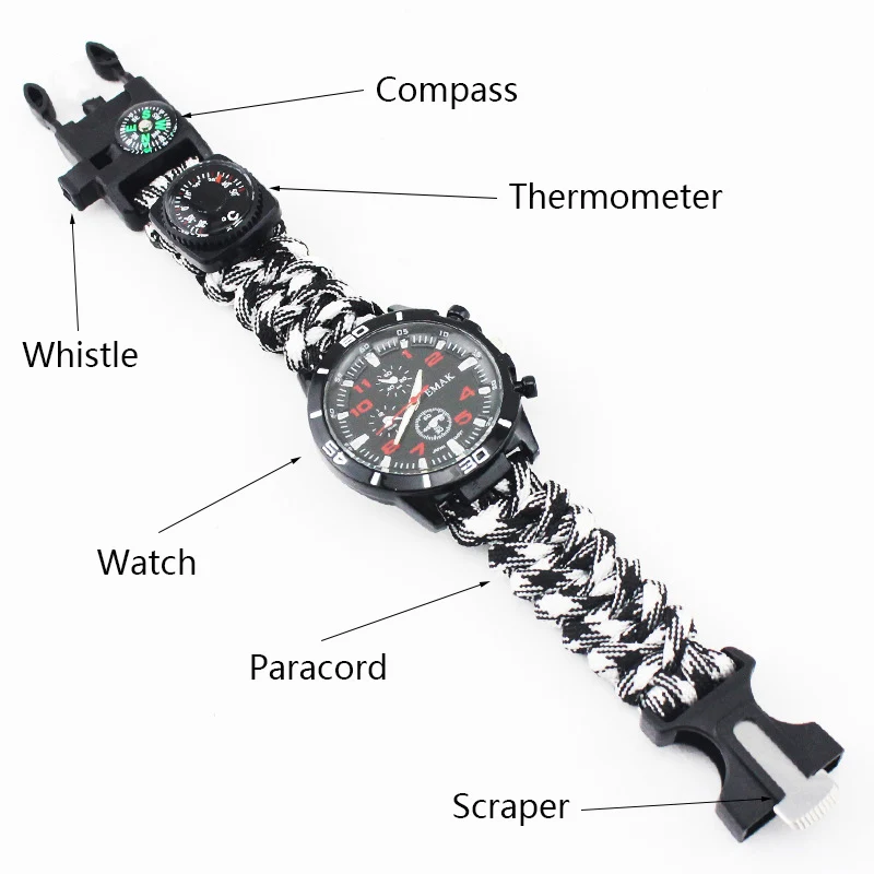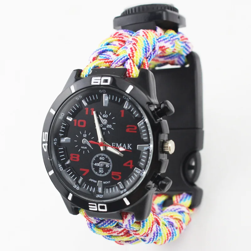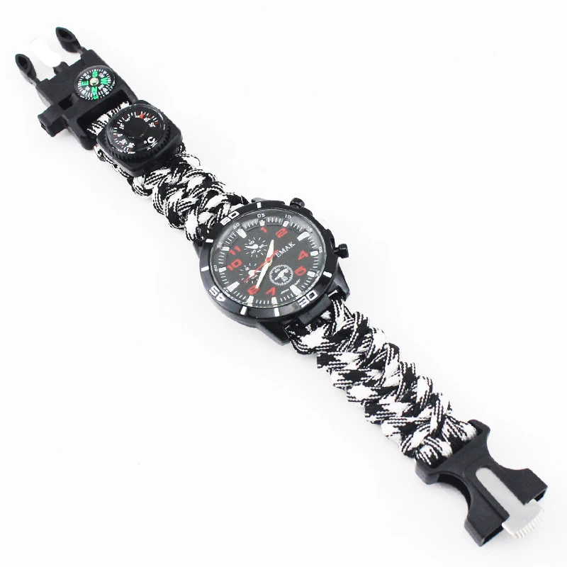 Multi-functional Survival Watch Outdoor Camping Compass Thermometer Rescue Paracord Bracelet Equipment Tools kit Paracord Band 20