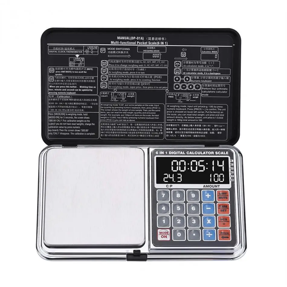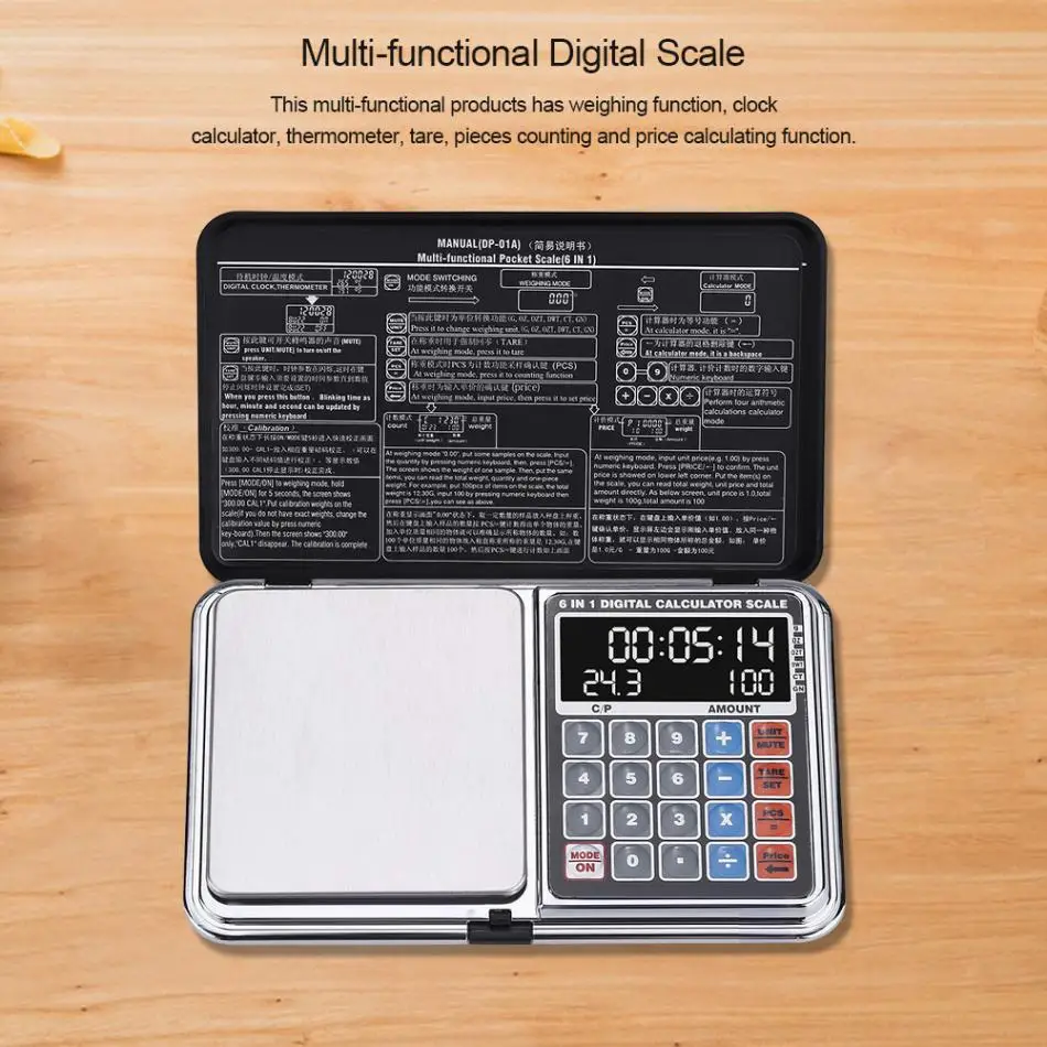Multifunctional Portable LCD Digital Pocket Scale for Jewelry Gold Weighting Calculator Price Calculating with clock Thermometer