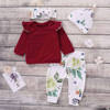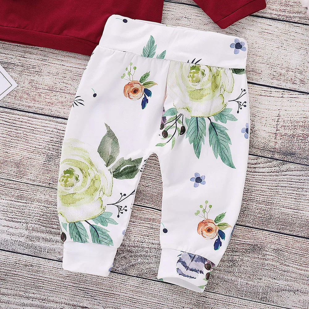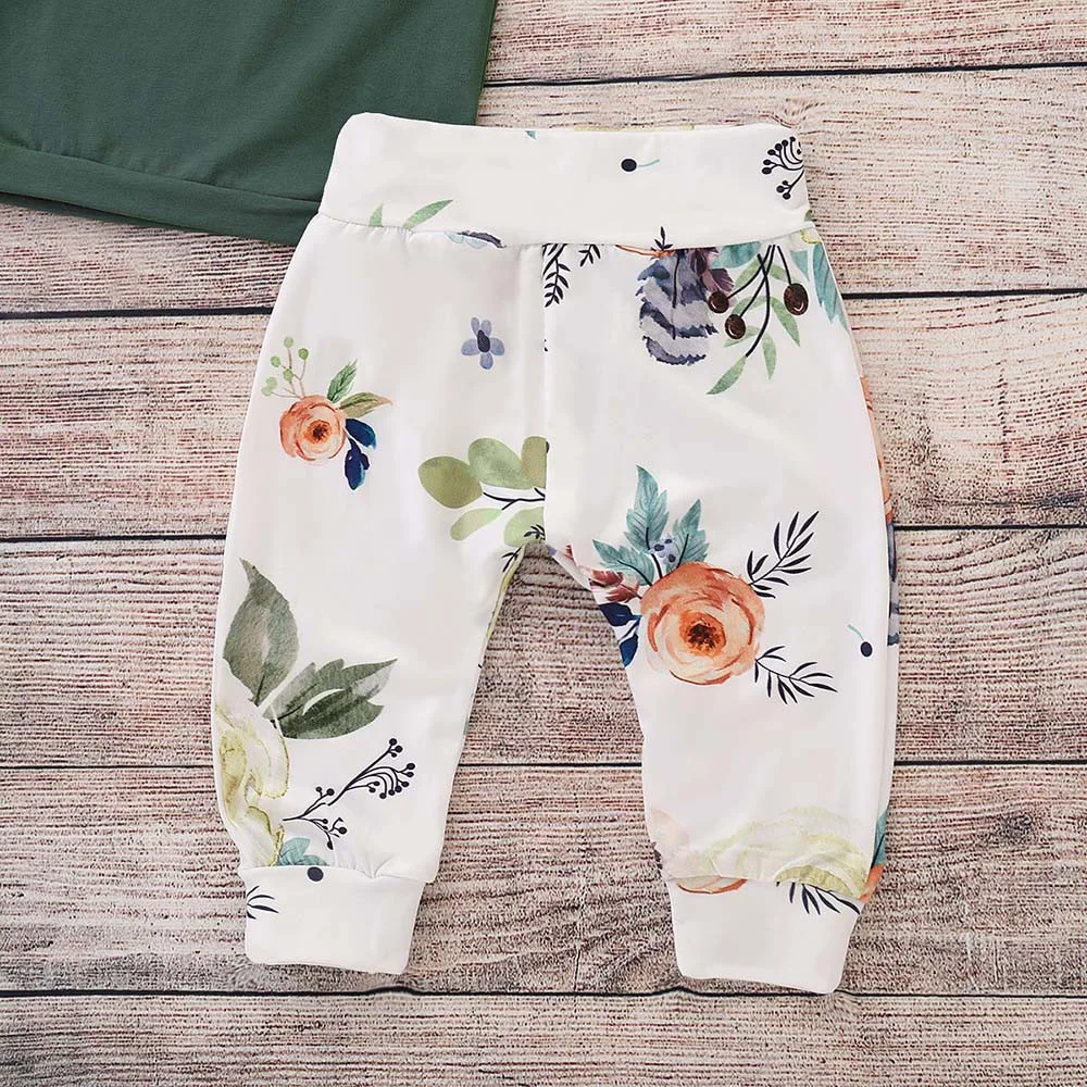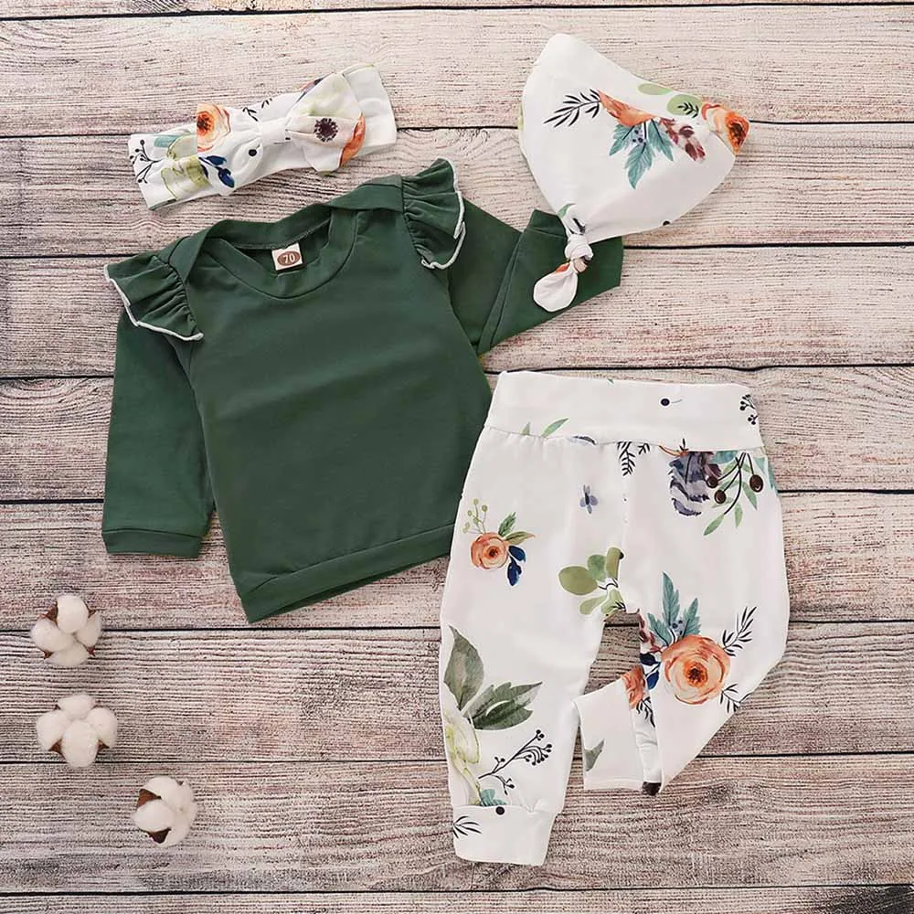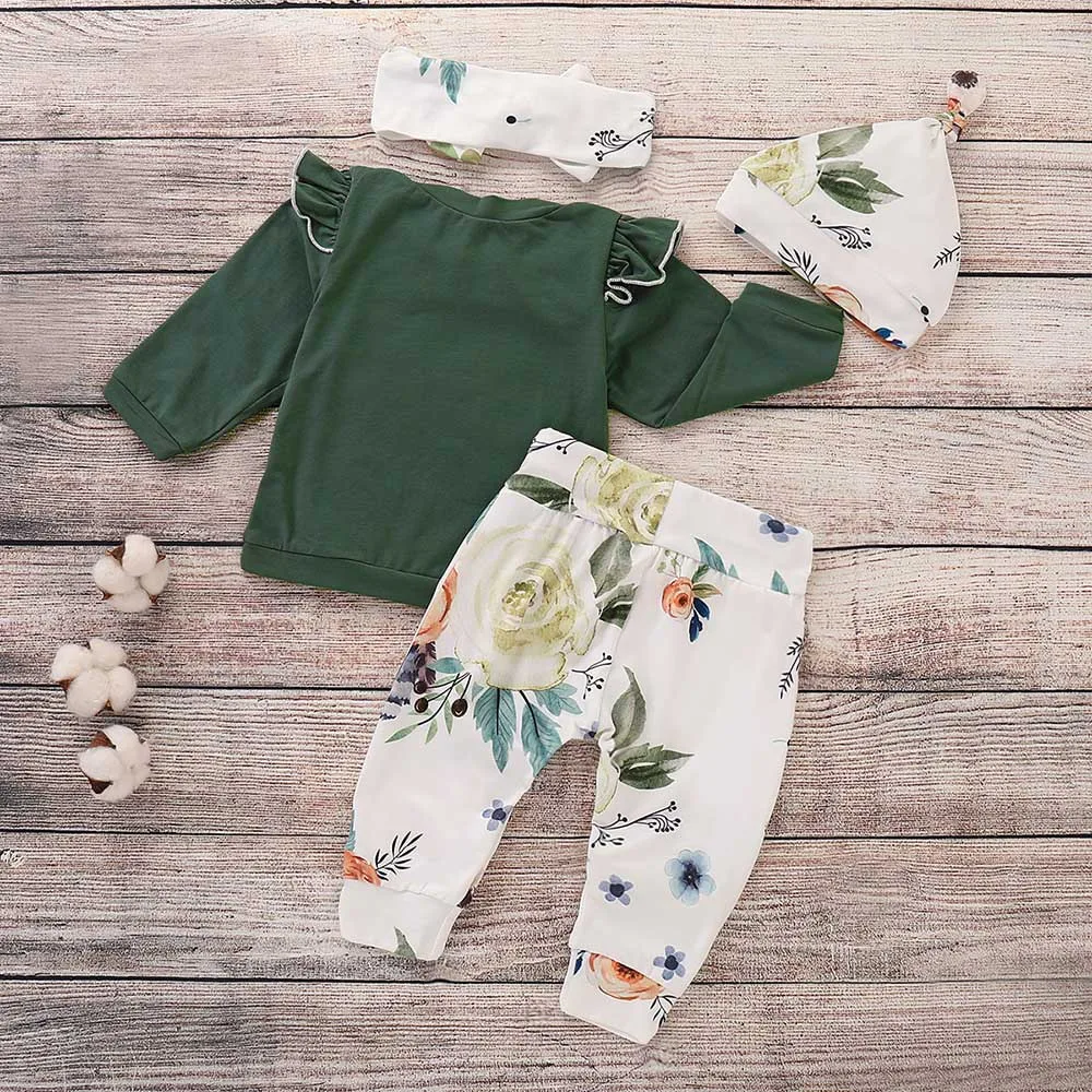 MUQGEW Baby Girls Boys Clothes 4PCS Toddler Baby Girls Floral Print Top Pants Cap Headband Ruffles Outfits Set roupa infantil