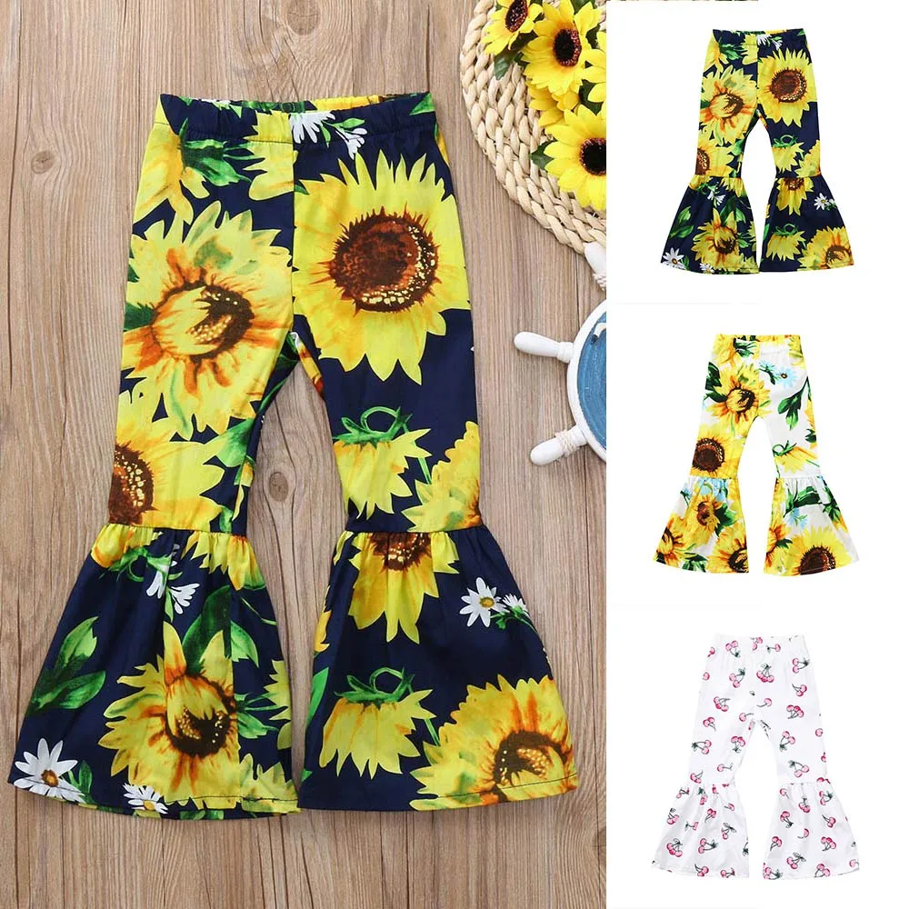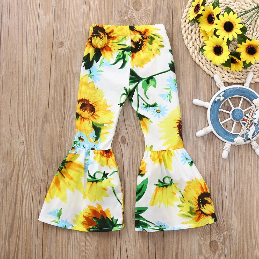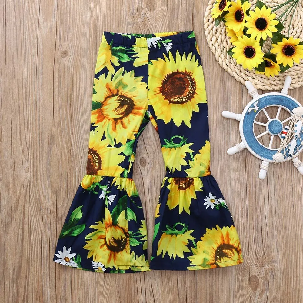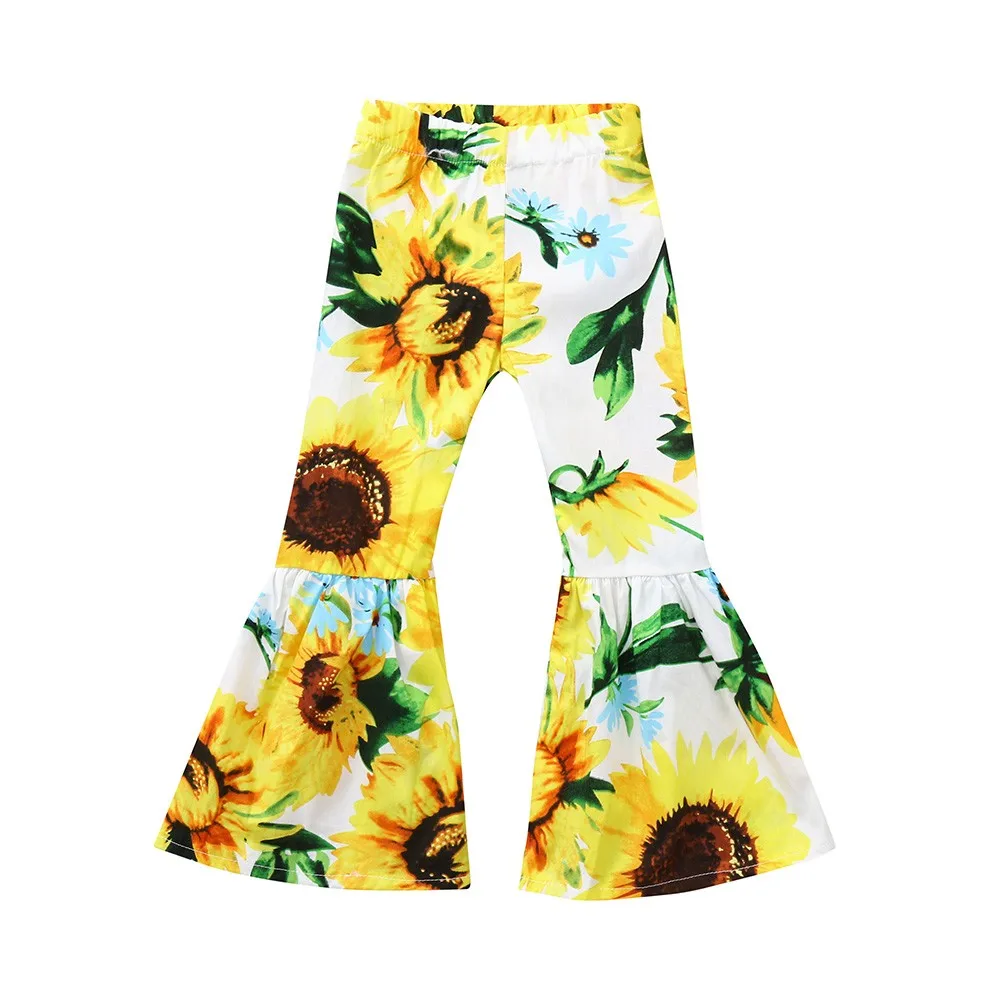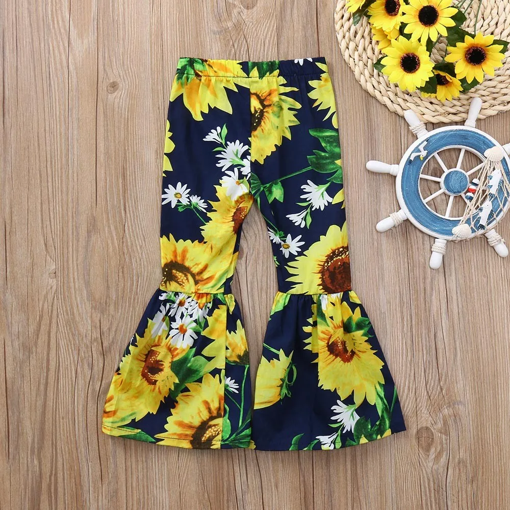 MUQGEW Children Baby Kid Girls clothes Sunflower Print Bow Flare Long Pants Casual Trousers Clothes roupa infantil