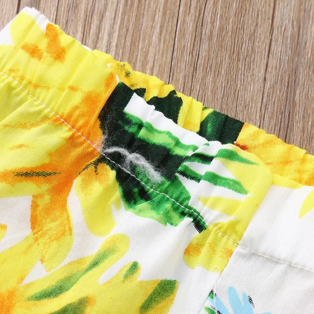 Children Kid Girls Sunflower Print Bow Flare Long Pants Casual Trousers Clothes