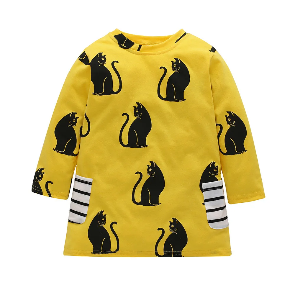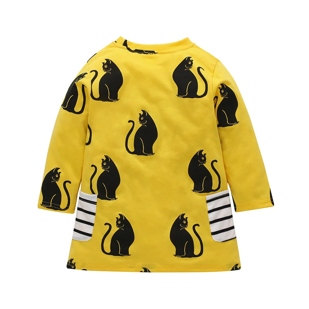 Baby Girls Infant Kids Cartoon Clothes Cat Stripe Dress Casual Dresses