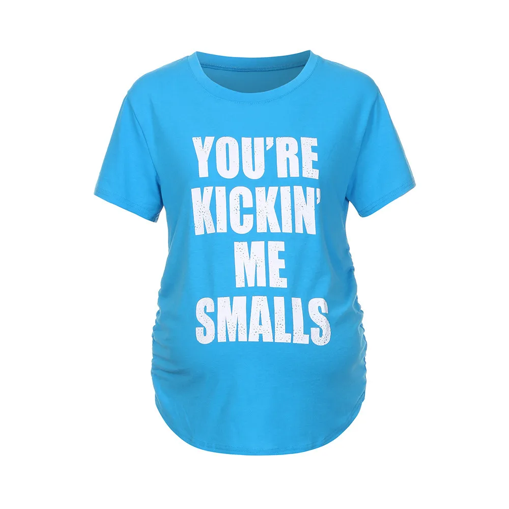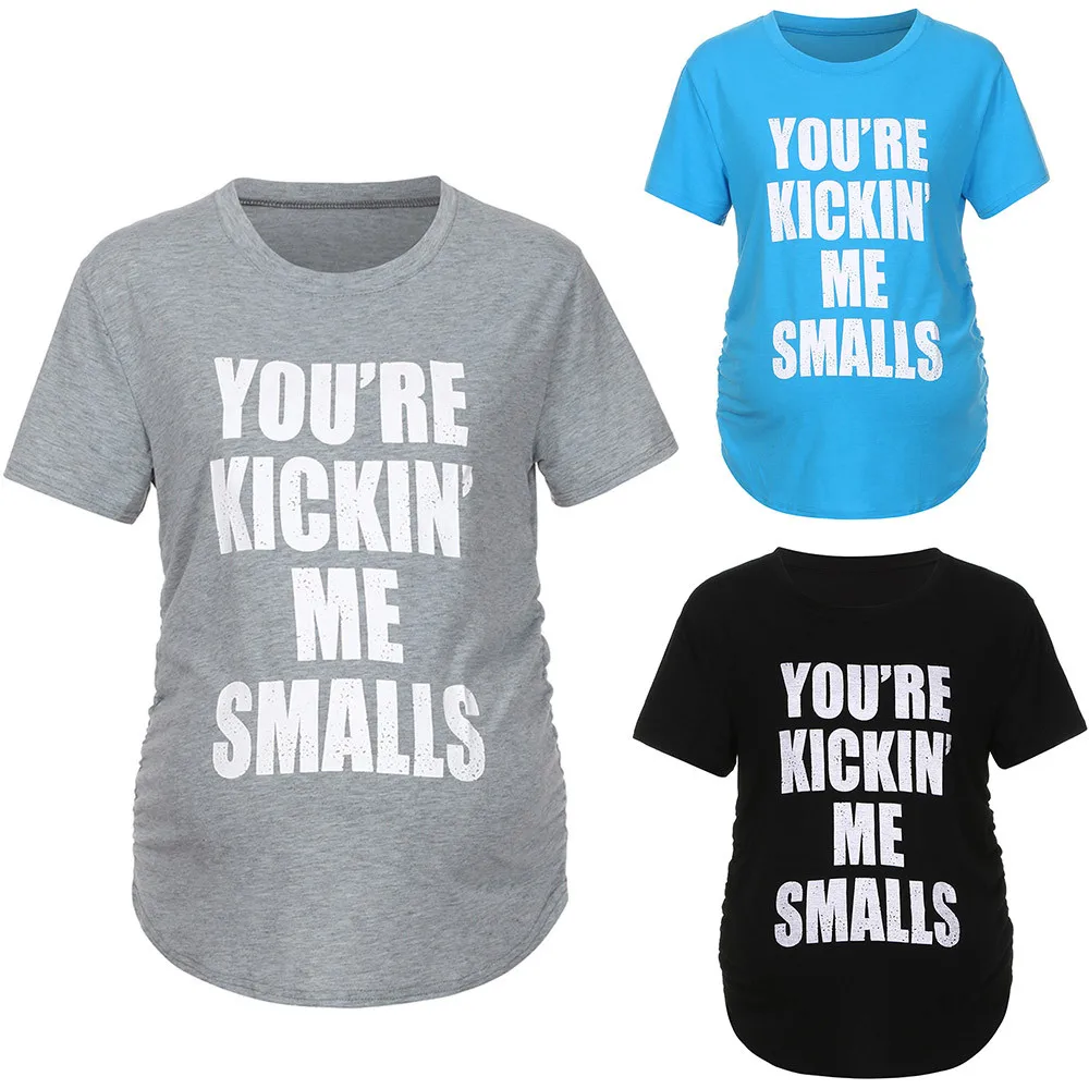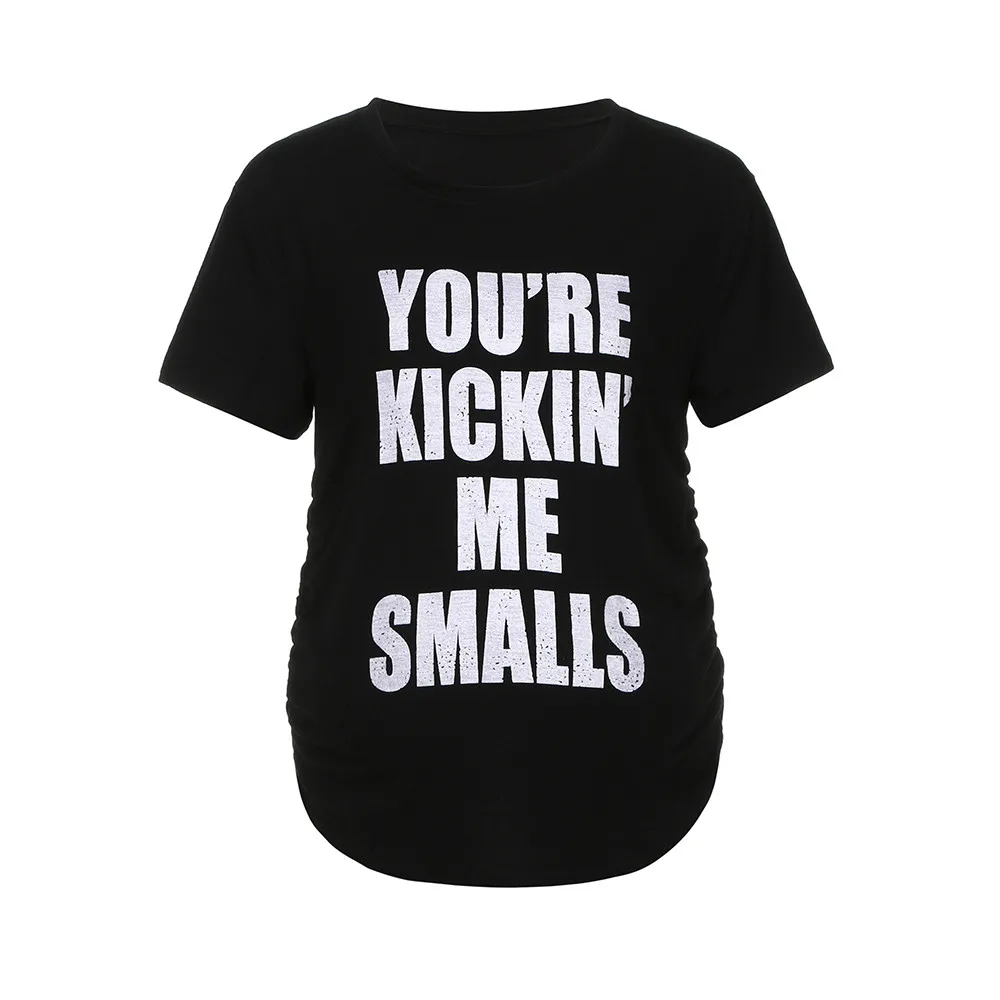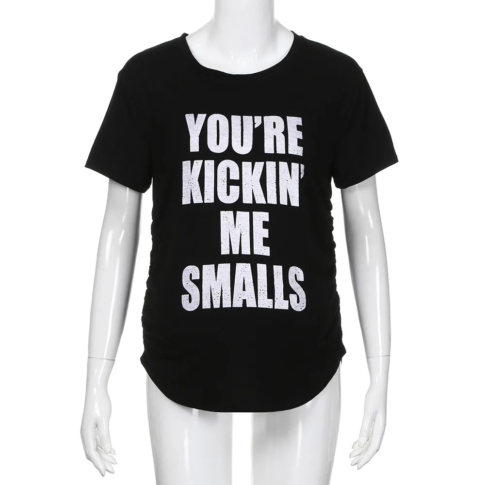 MUQGEW Maternity Kickin’ Me Smalls Funny T Shirts Women Short Sleeve Letter Printed Tops Pregnancy Shirts Mon Maternity Clothing