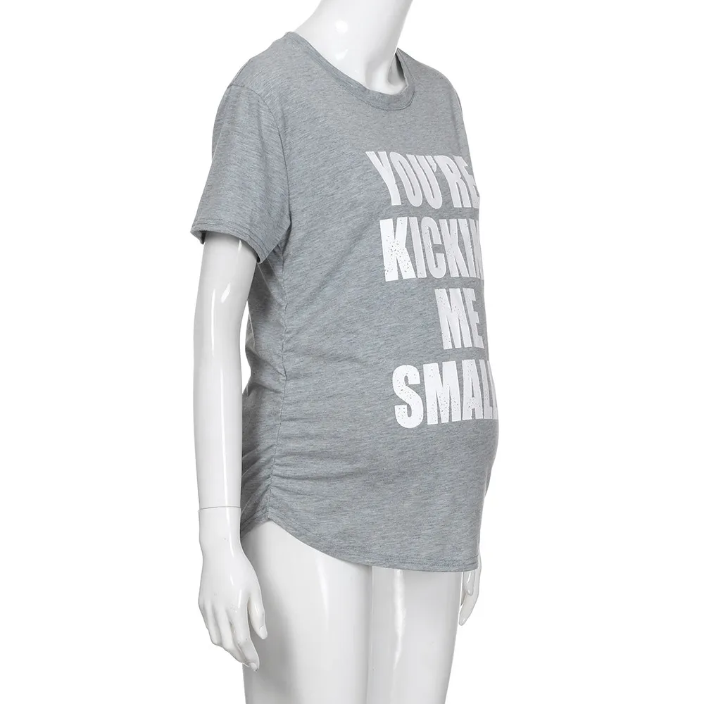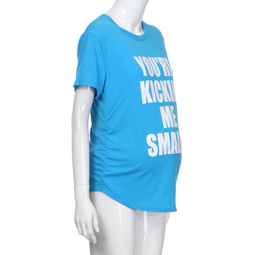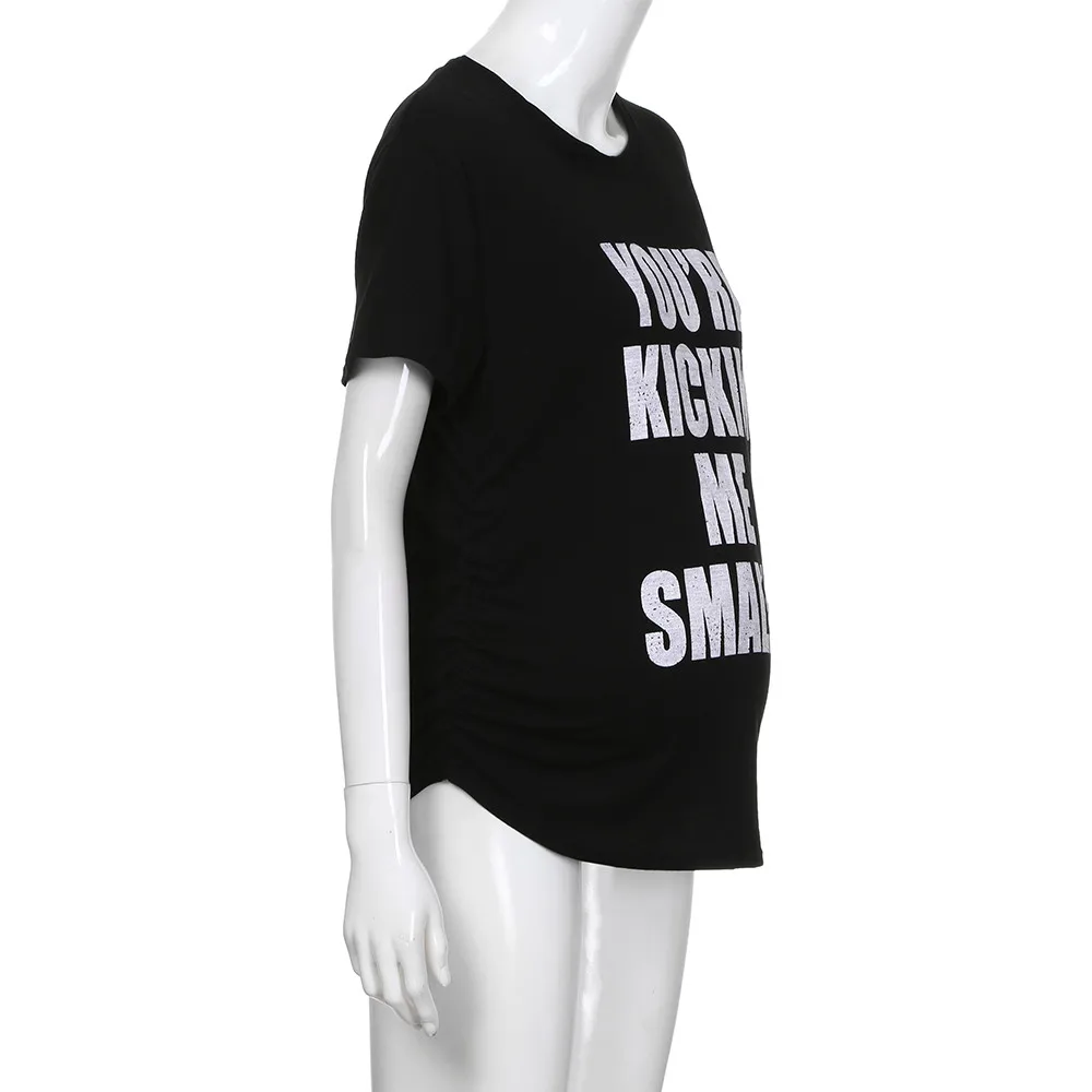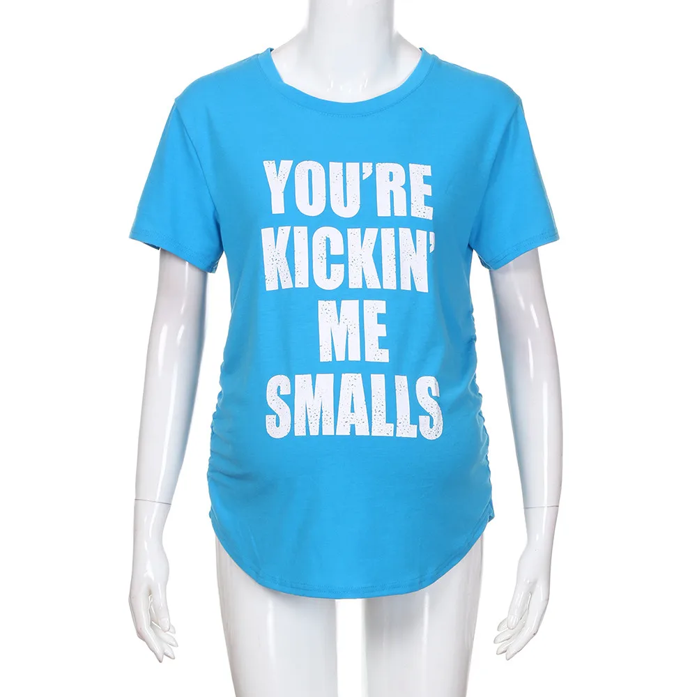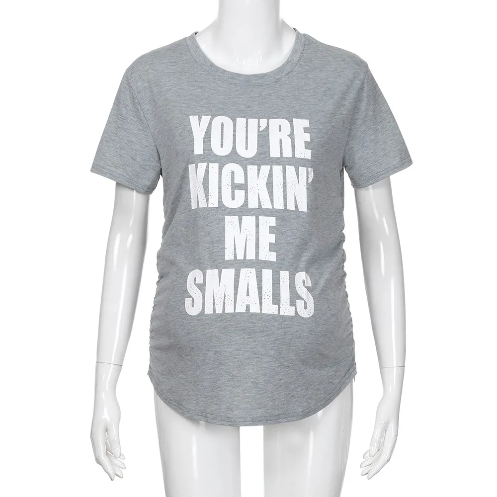 MUQGEW Maternity Kickin’ Me Smalls Funny T Shirts Women Short Sleeve Letter Printed Tops Pregnancy Shirts Mon Maternity Clothing