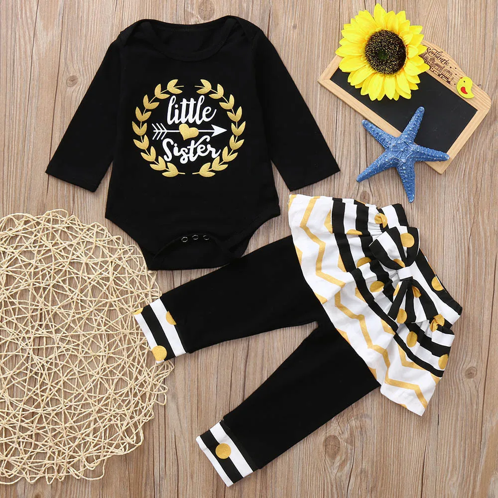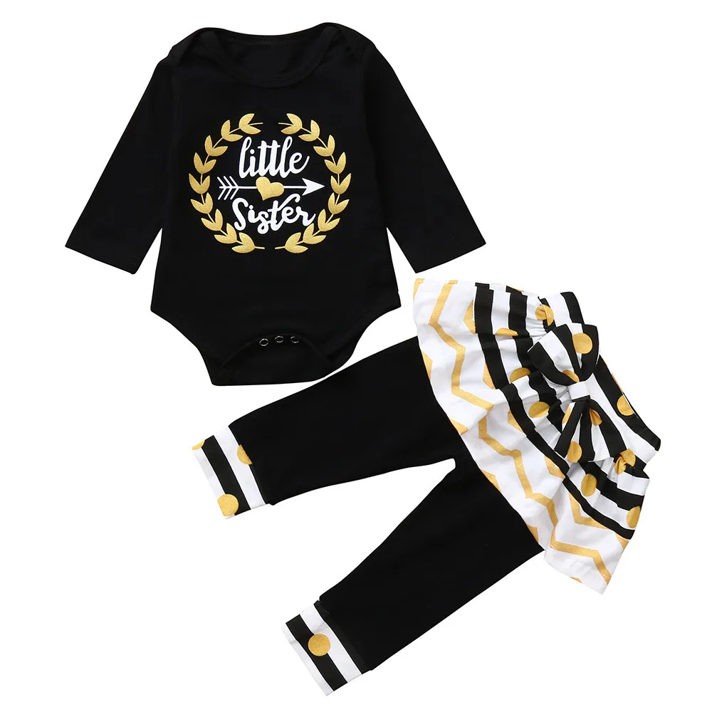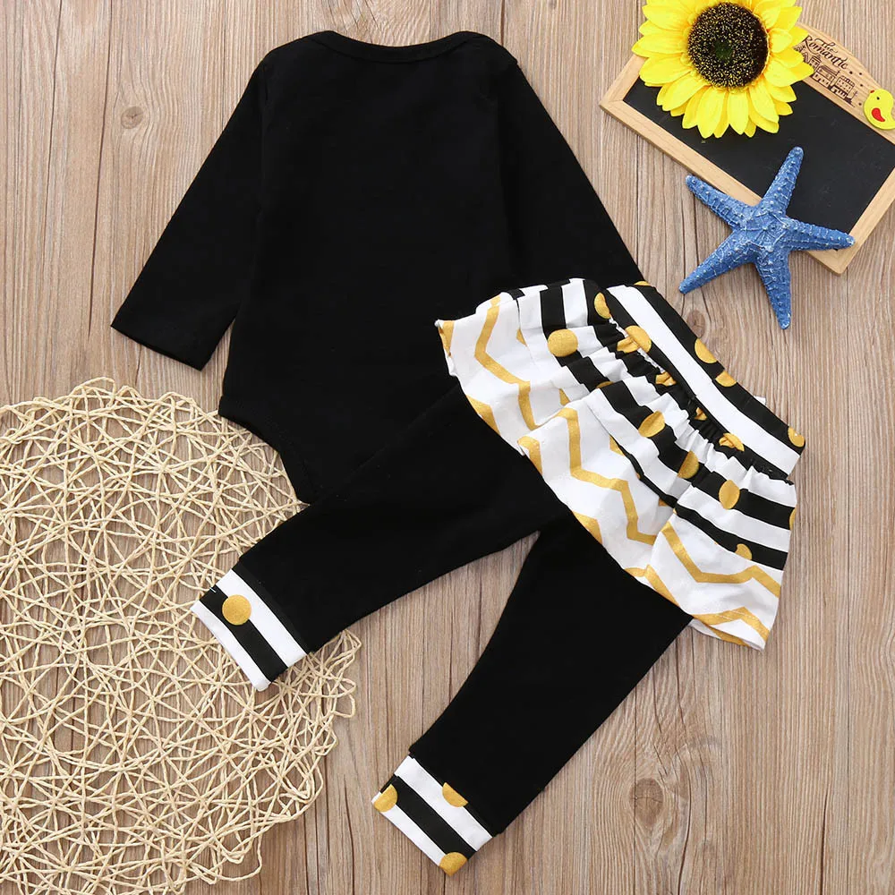 MUQGEW Newborn Clothes Winter Infant Baby Girls Long Sleeve Letter Print Romper+Dots Striped Pants Outfits roupa de bebe