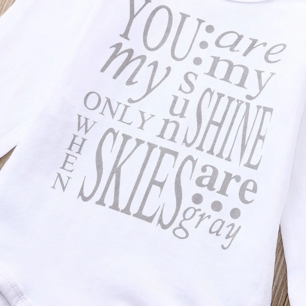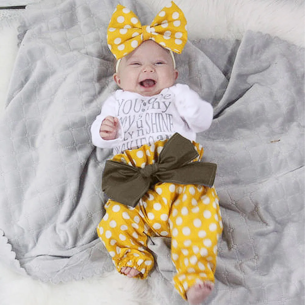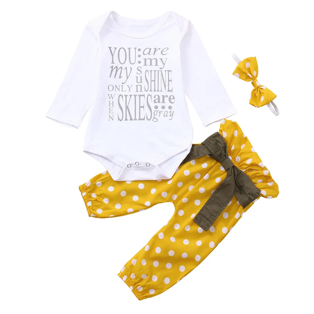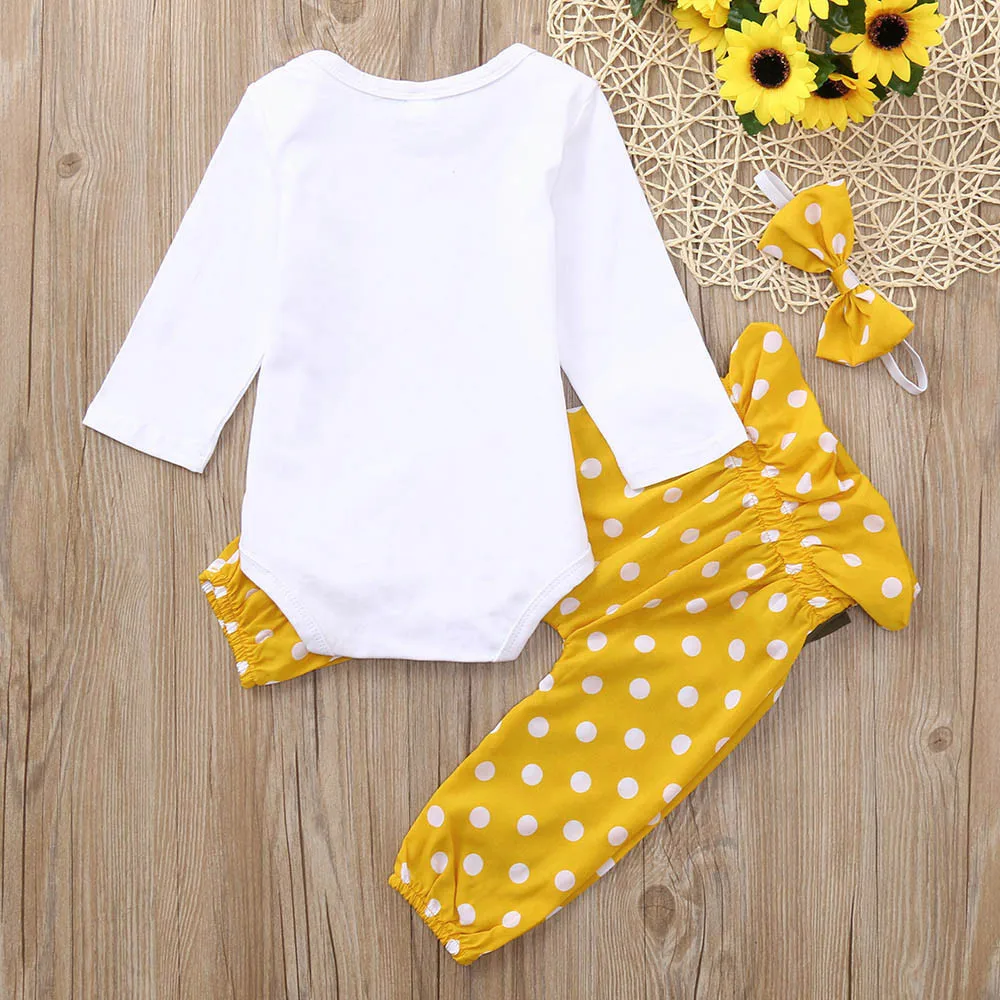 Newborn Baby Girls Letter Print Long Sleeves Romper+Pants+Headband Outfits Sets