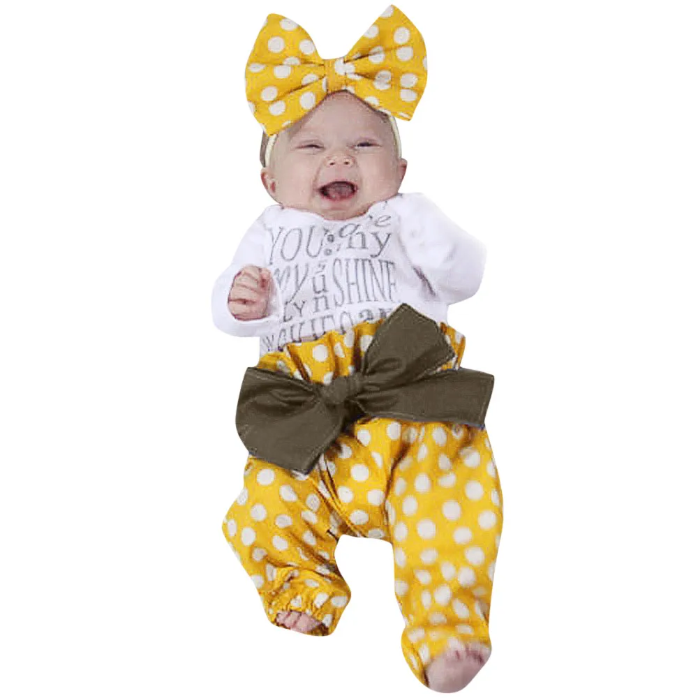 MUQGEW Newborn Clothes Winter Newborn Baby Girls Letter Print Long Sleeves Romper+Pants+Headband Outfits Sets roupa de bebe