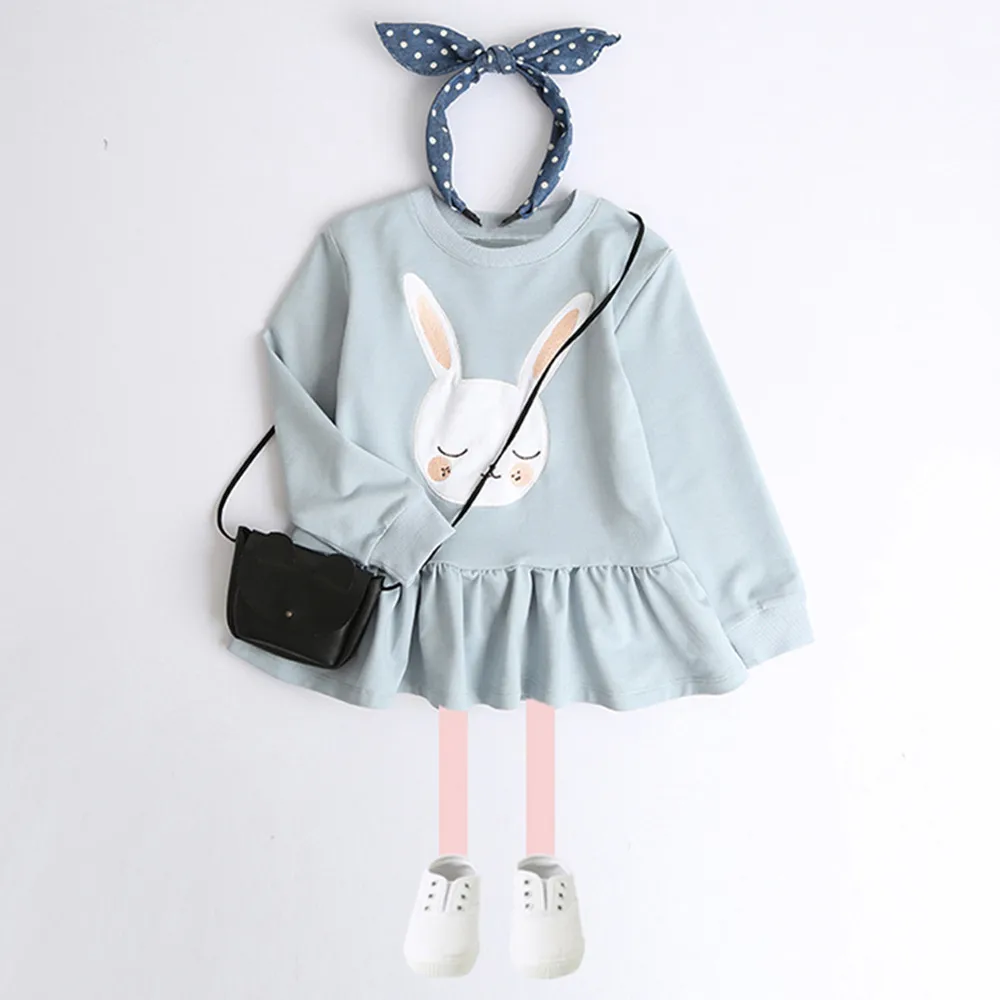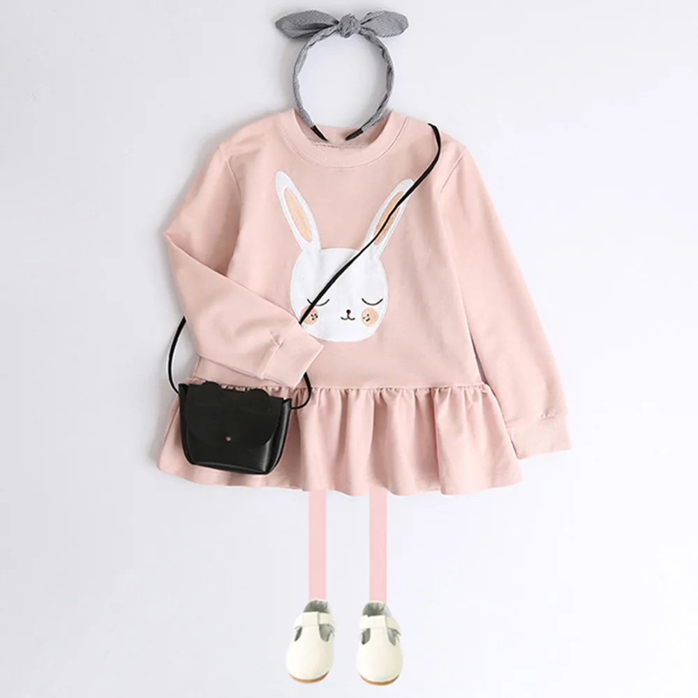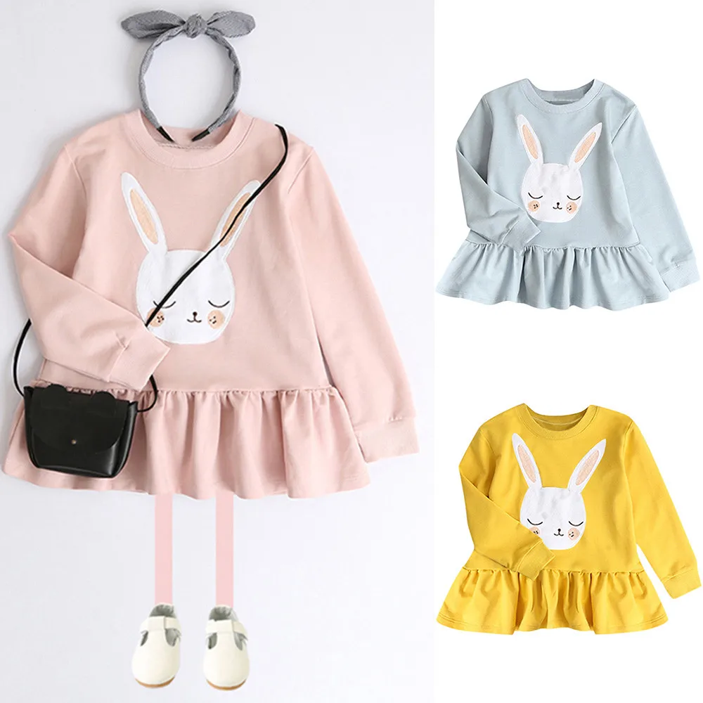 Toddler Kids Baby Girls Long Sleeve Animal Rabbit Dresses Clothes Dress Outfits