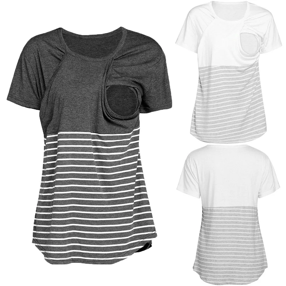 MUQGEW Pregnant Maternity Mons Clothes Nursing Tops 2018 Fashion Stripe Breastfeeding Top T-Shirt Women Pregnant Clothing