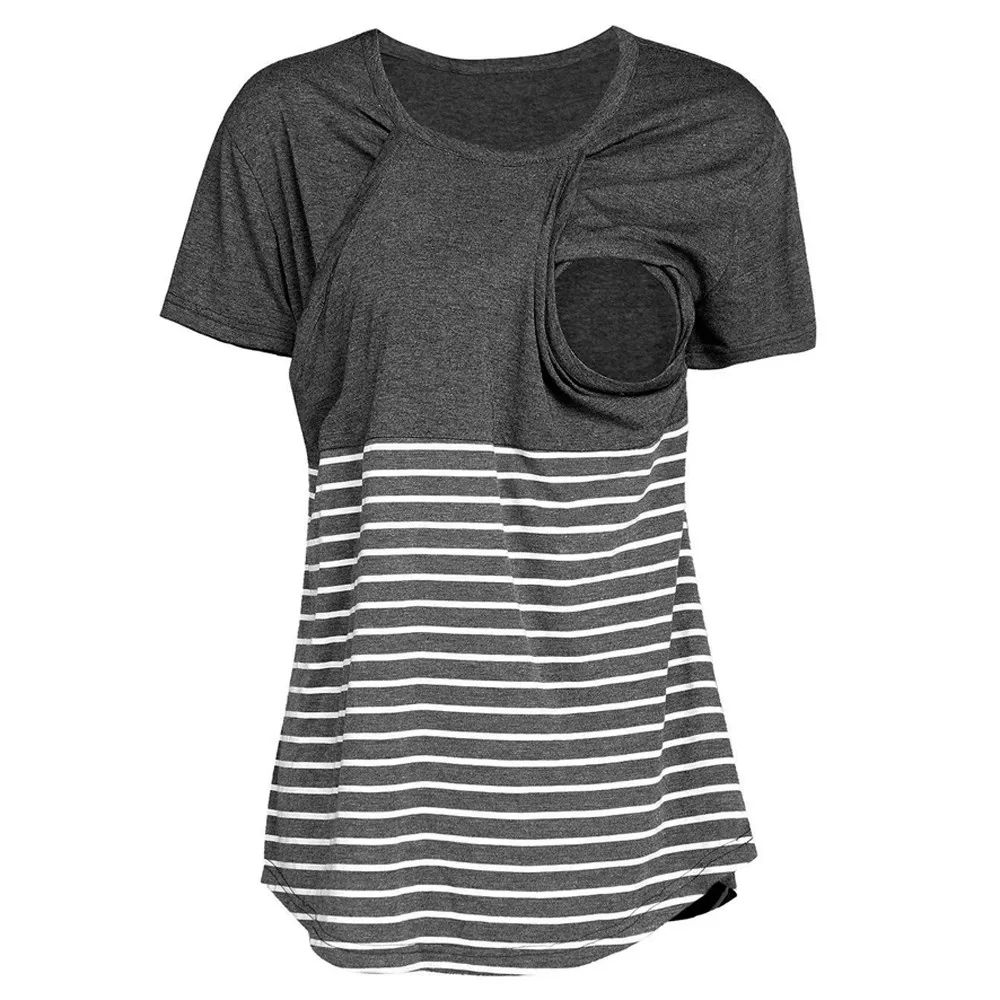 Women Pregnant Maternity Nursing Stripe Breastfeeding Top T-Shirt Blouse