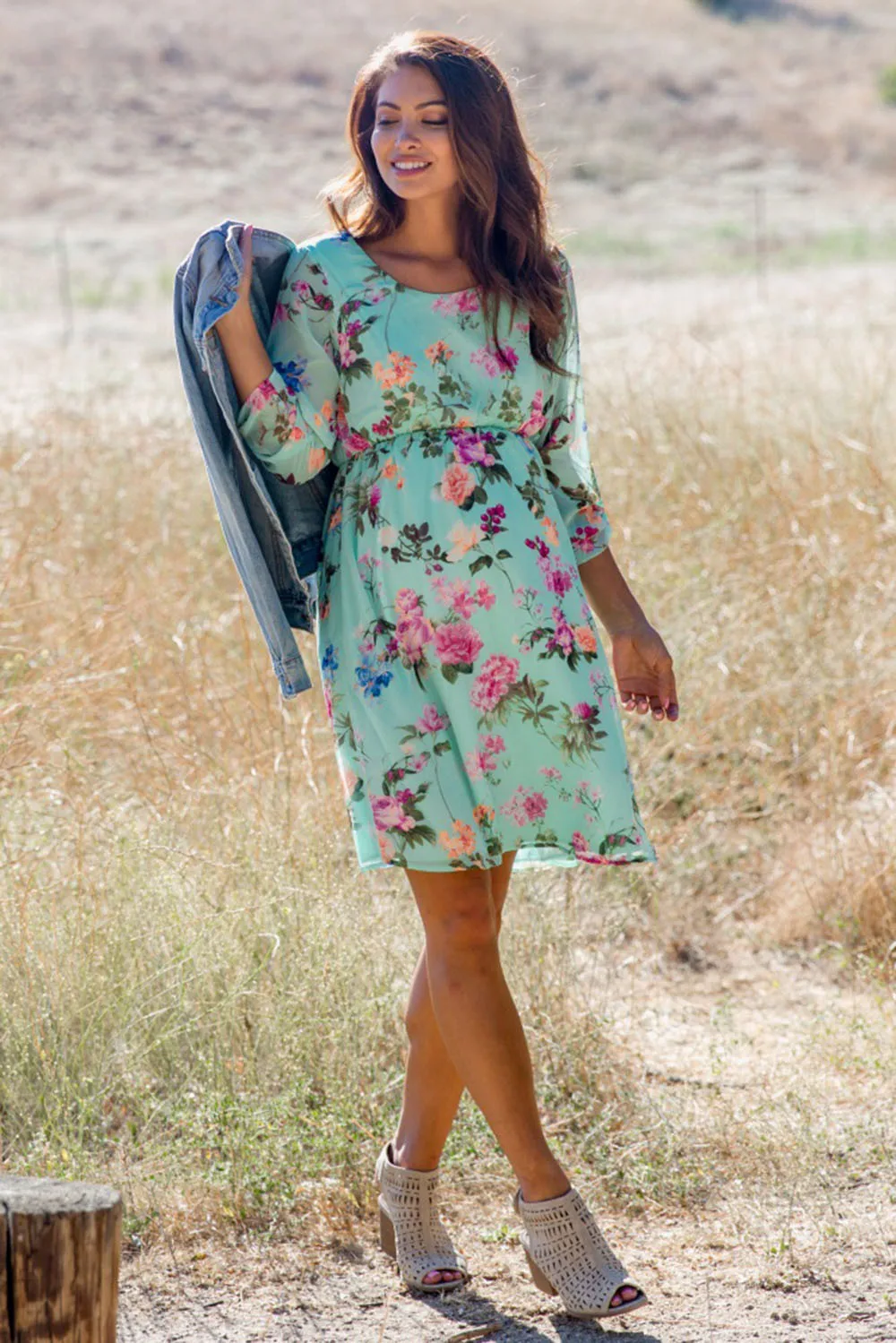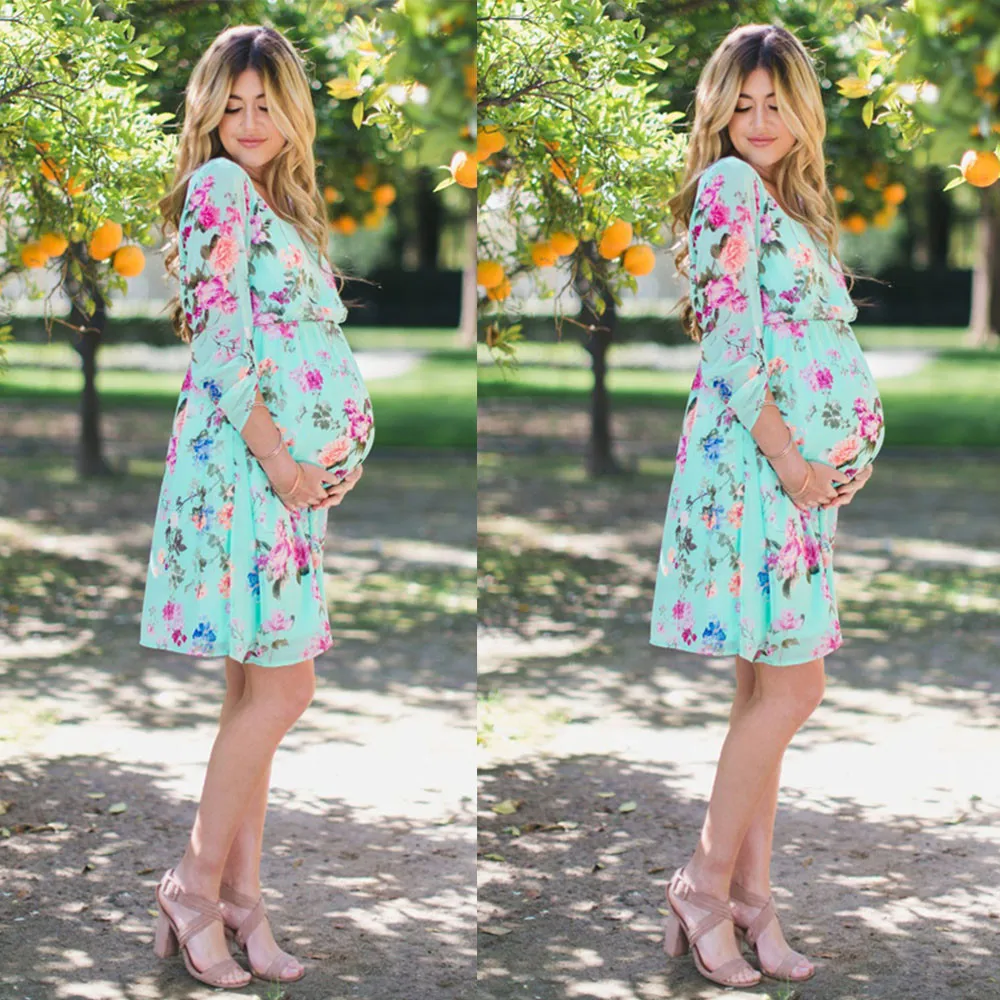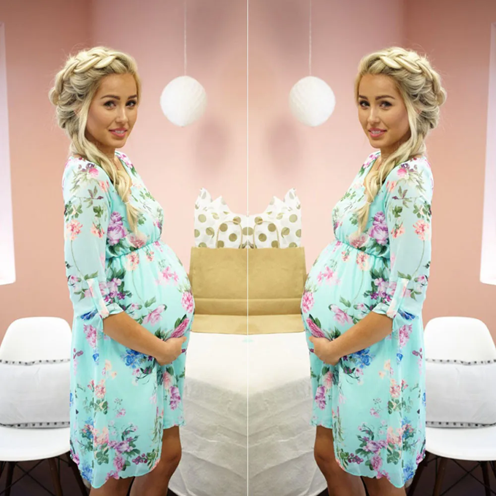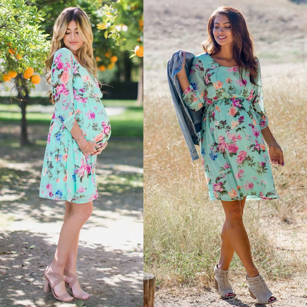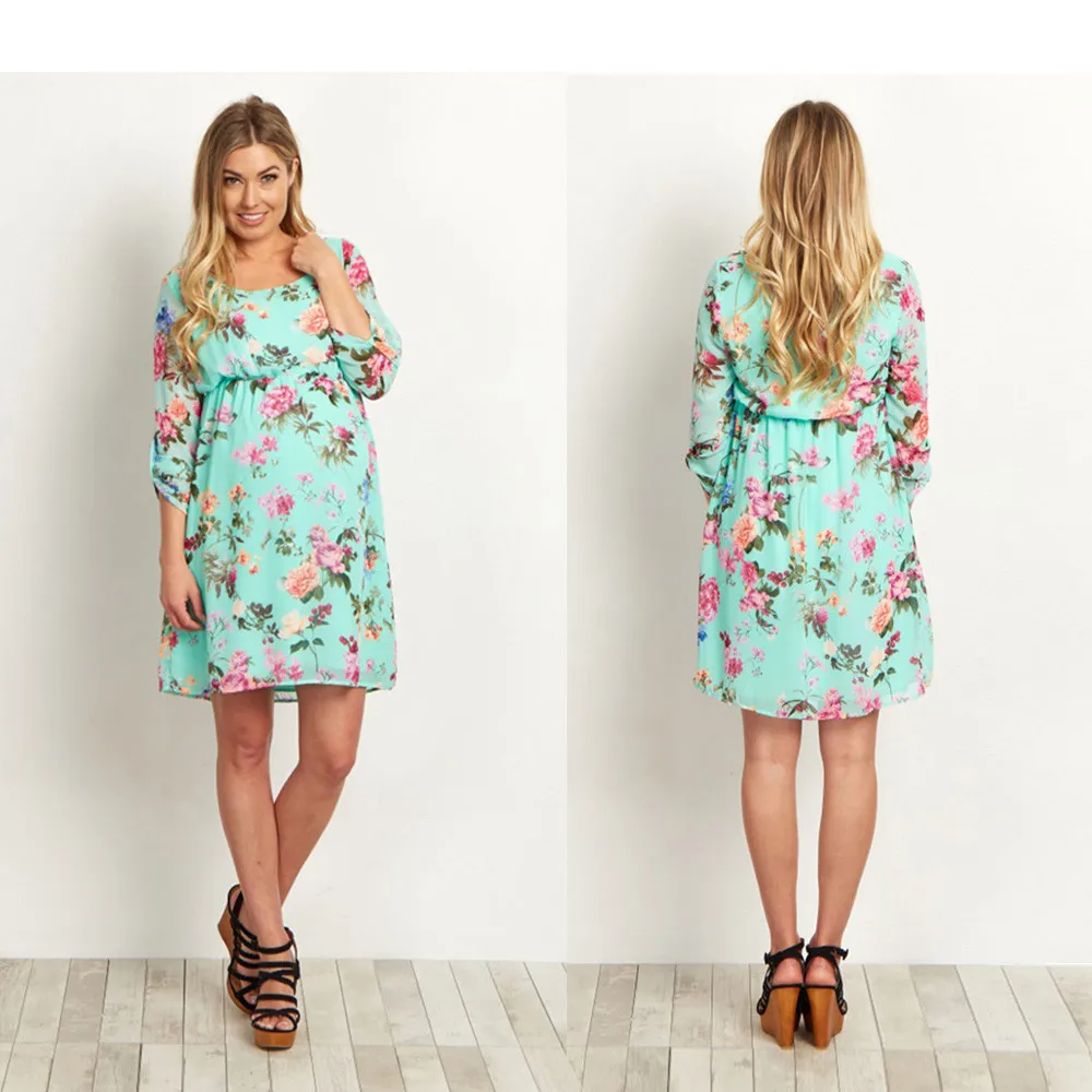 MUQGEW Pregnant Womens Clothes for Pregnant Nursing Nightgown Pregnancy Floral Printed Dress Clothes vestido