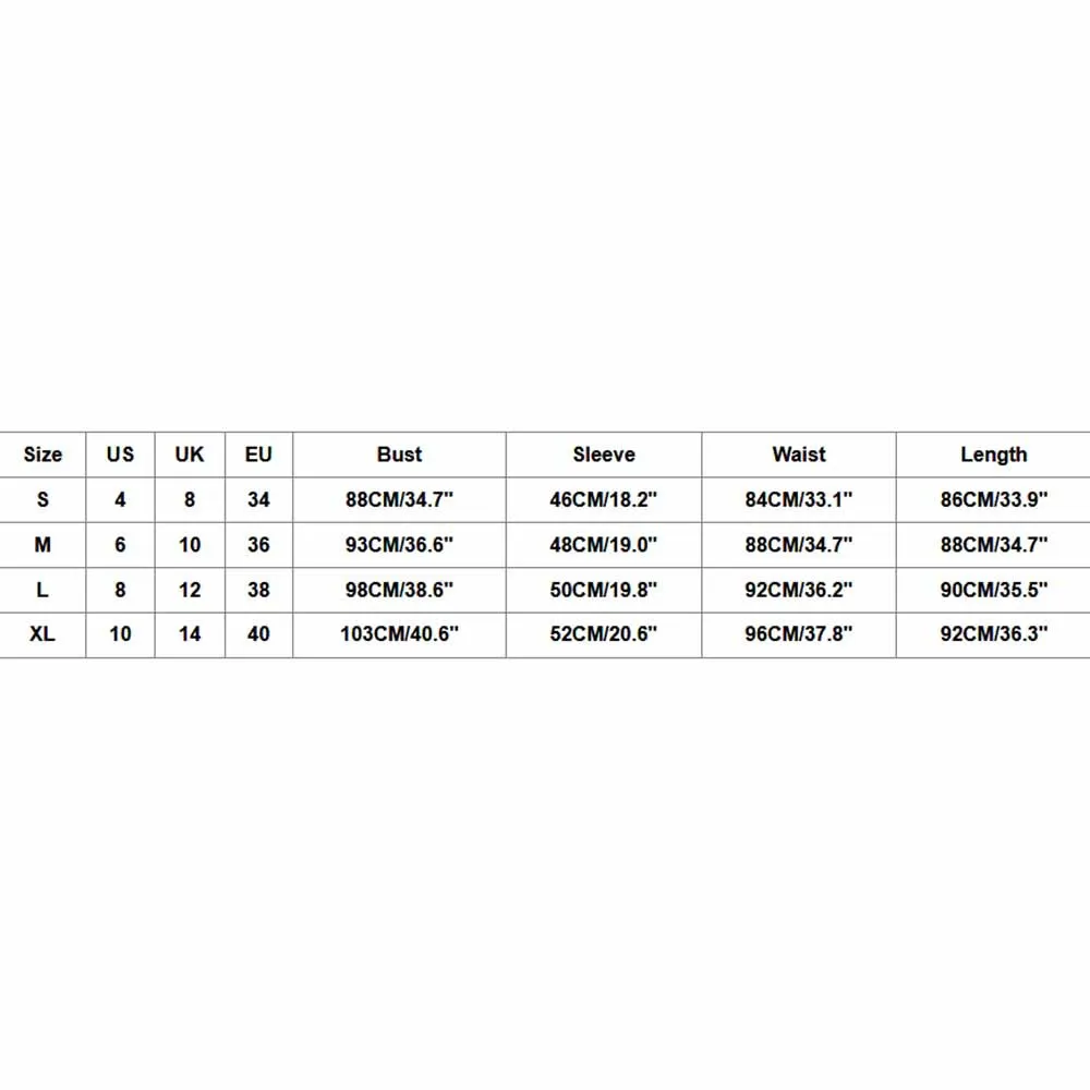 Size US UK EU Bust Sleeve Waist Length