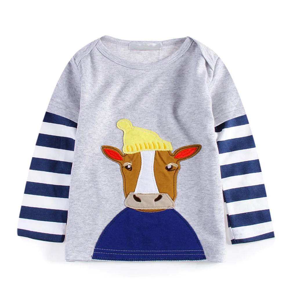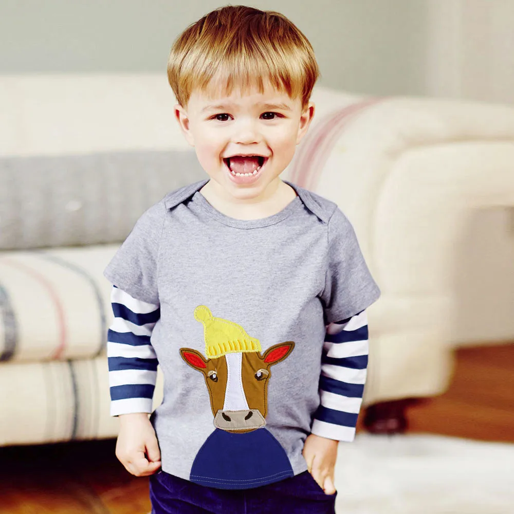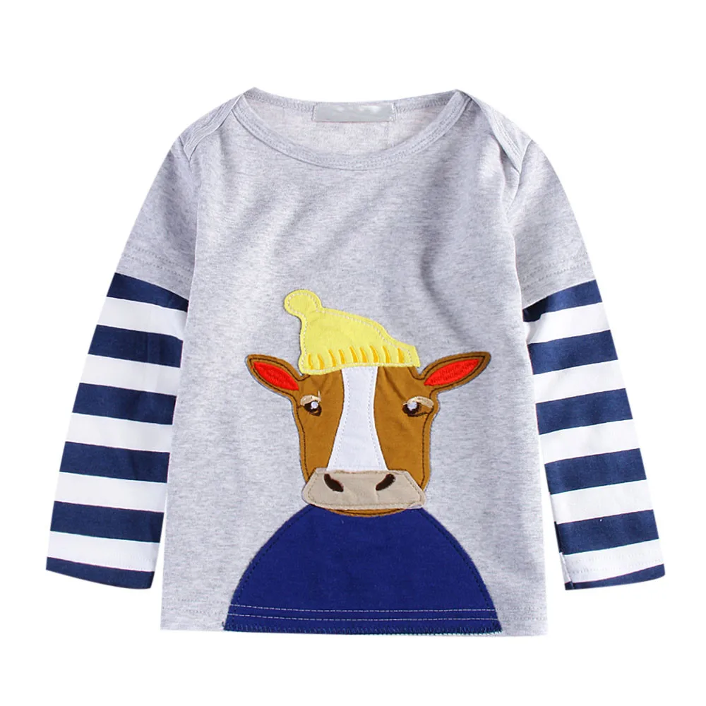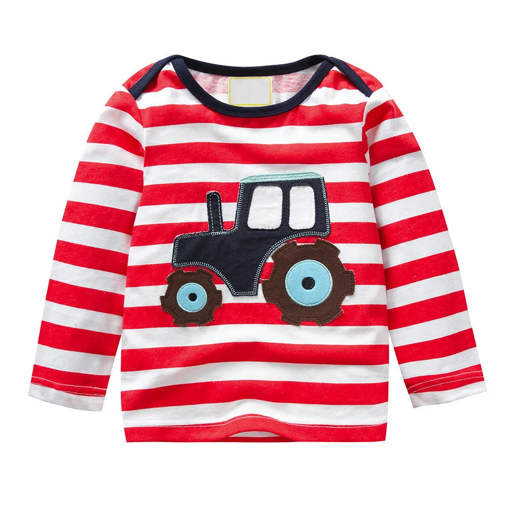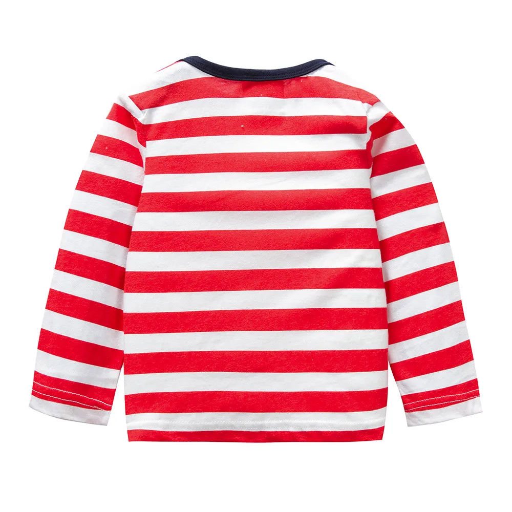 Baby Girls Boys Long Sleeve Cartoon Striped Soft Toddler Kids Tops Shirt Clothes