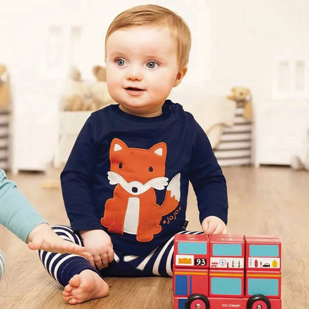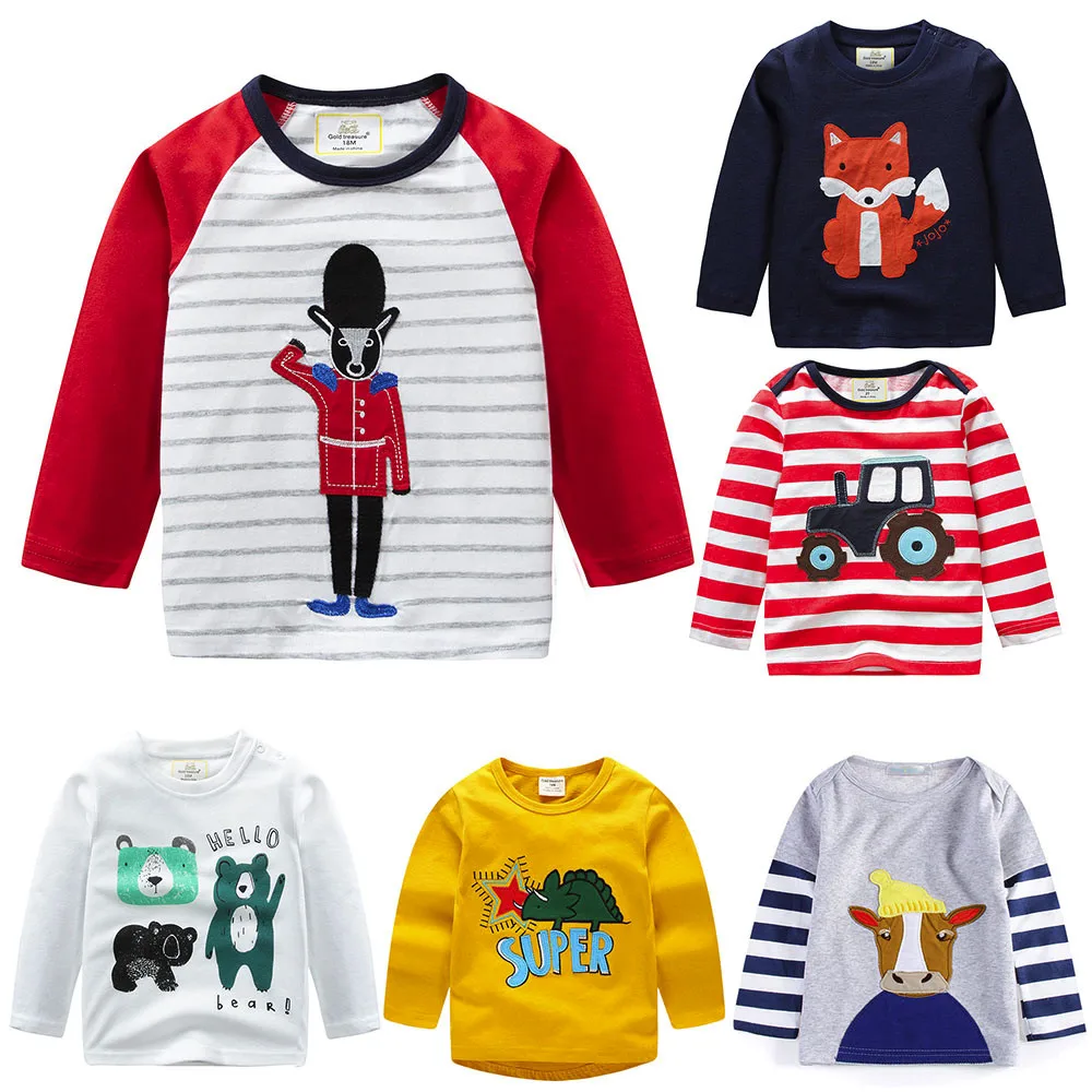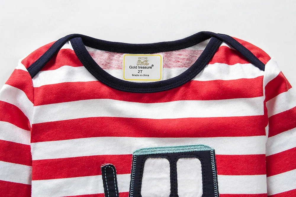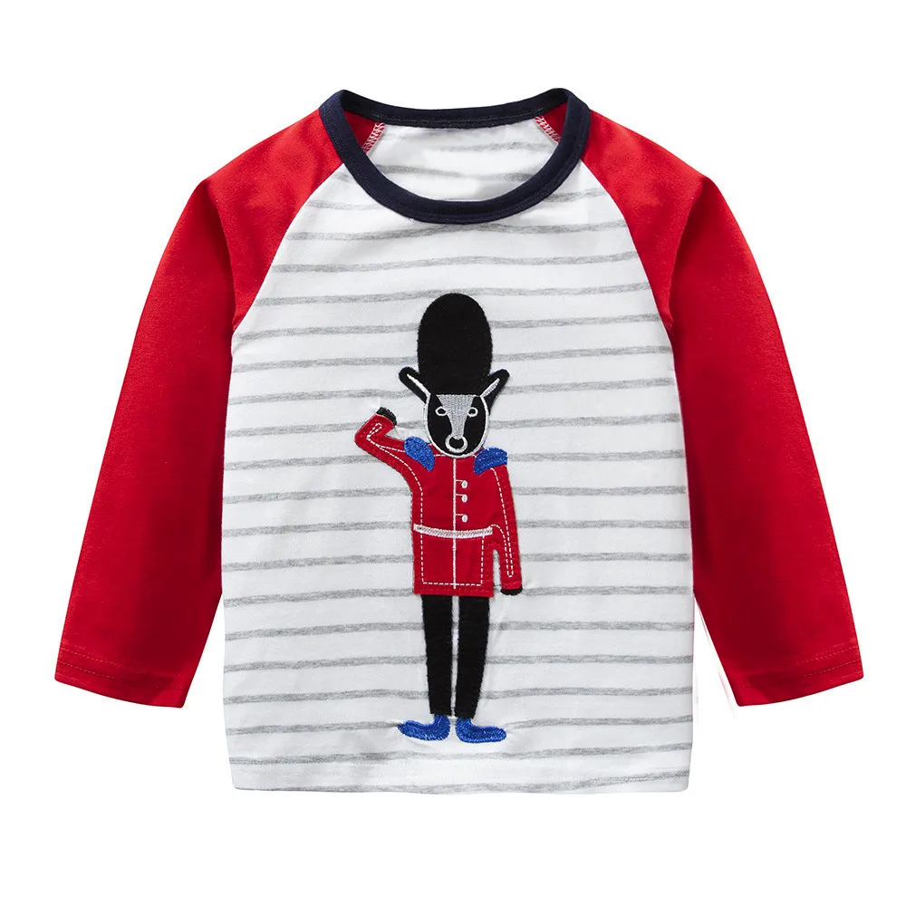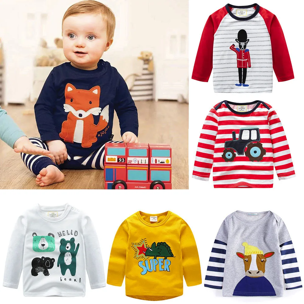 Baby Girls Boys Long Sleeve Cartoon Striped Soft Toddler Kids Tops Shirt Clothes