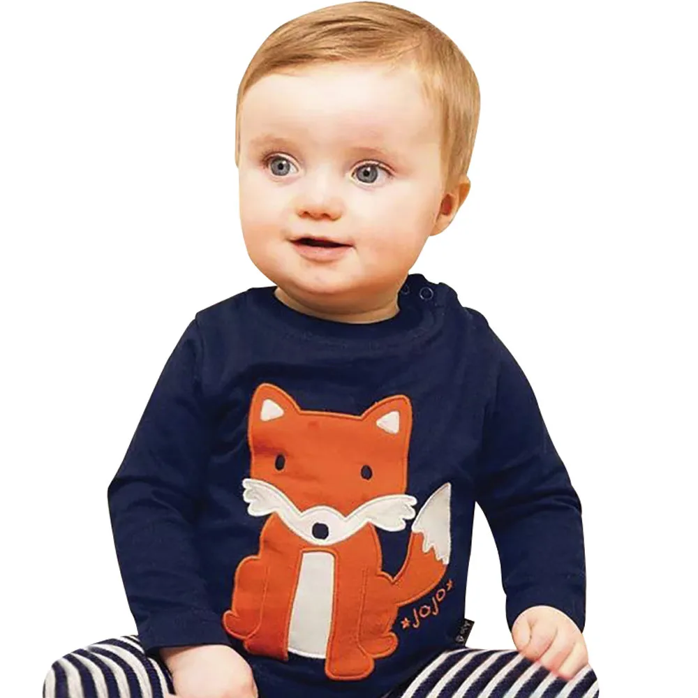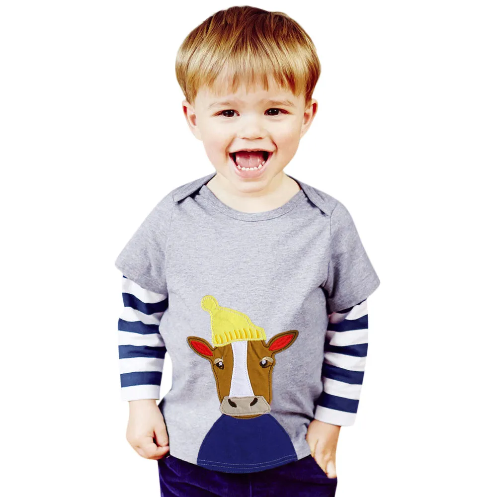 MUQGEW toddler Kids Boy&girl Tops 2018 Baby Girls Boys Long Sleeve Cartoon Striped Soft Toddler Kids Tops Shirt Clothes