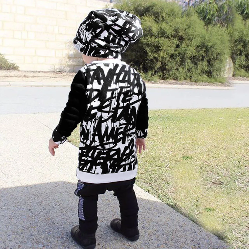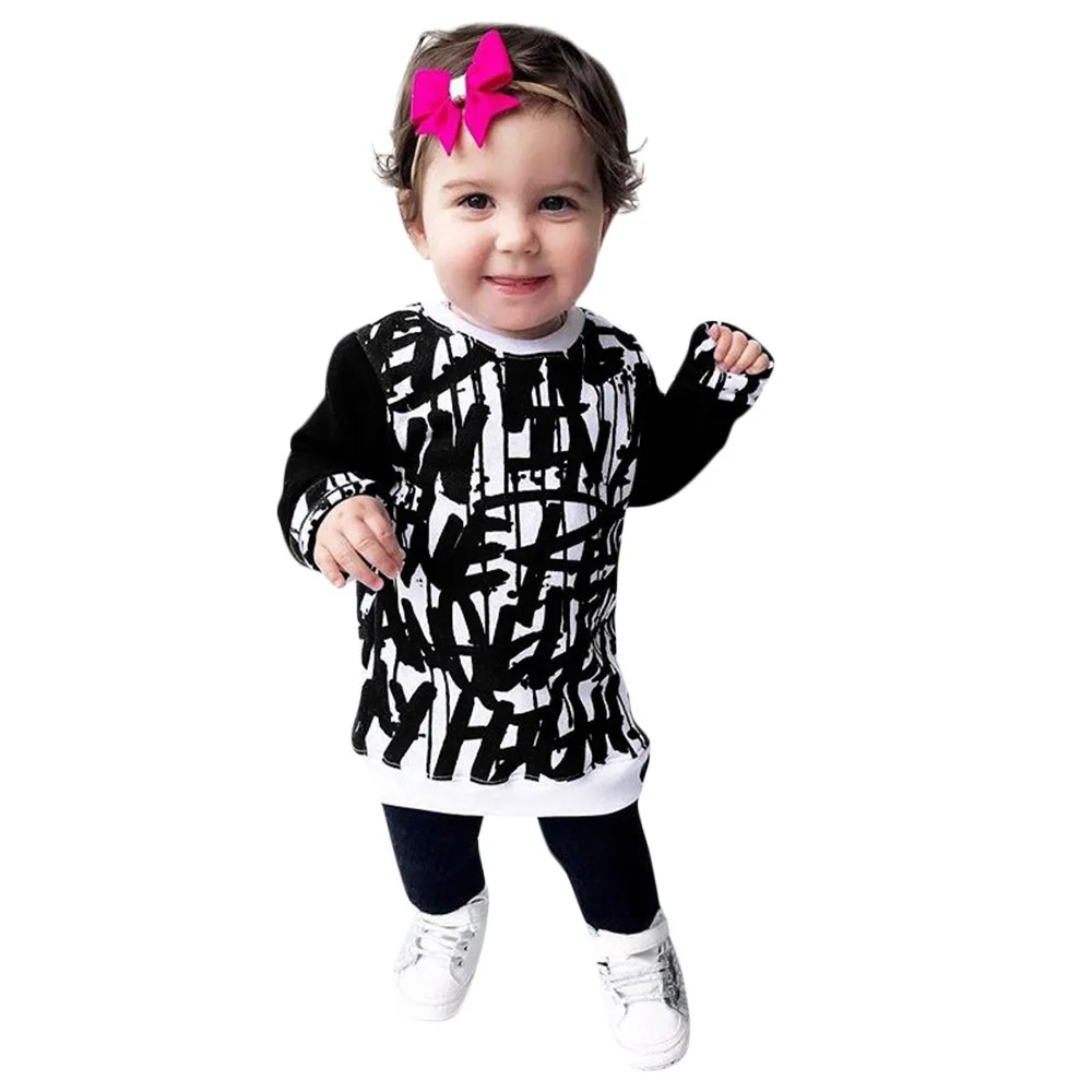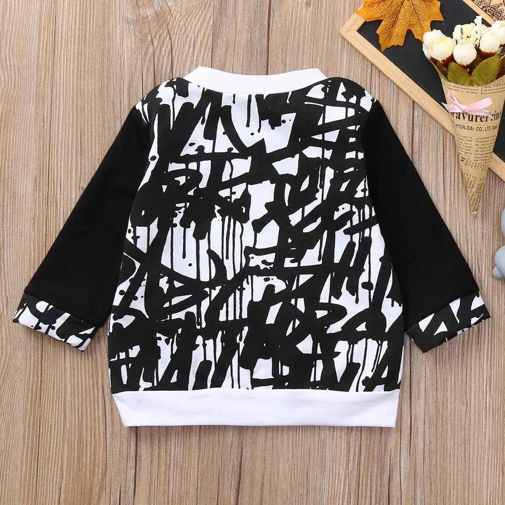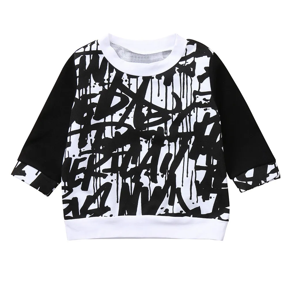Toddler Baby Kids Boys Girls Long Sleeve Doodle Print Tops Outfits Clothes