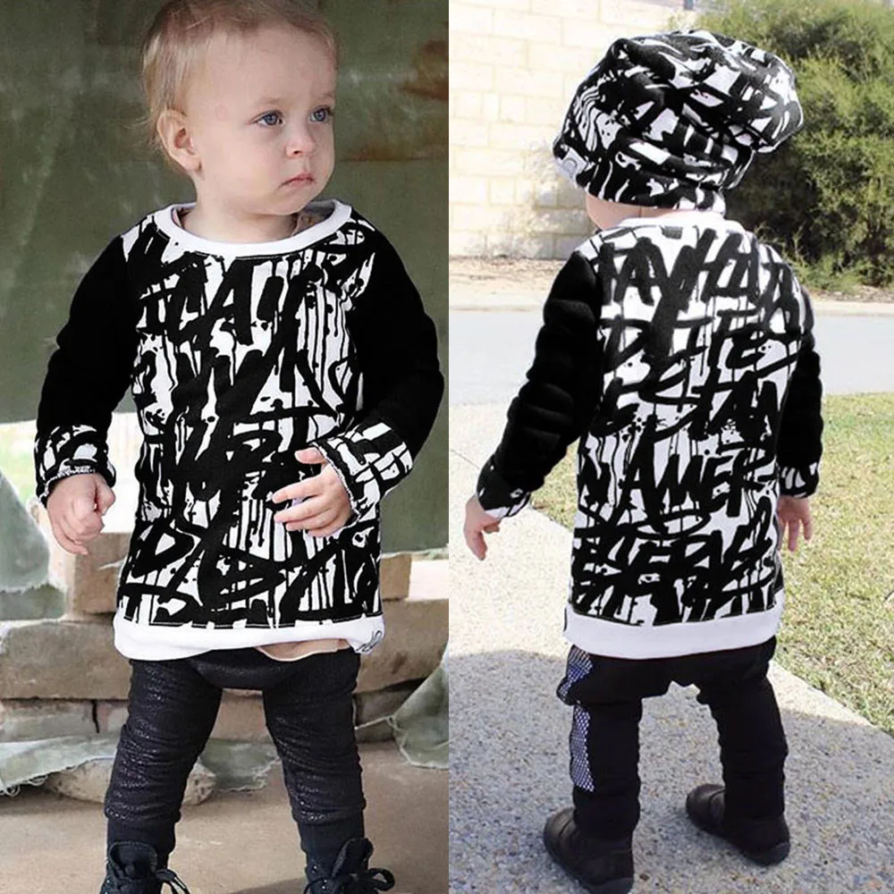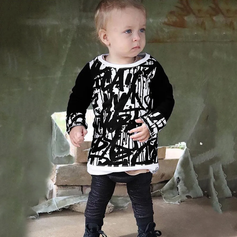 MUQGEW Toddler Newborn Toddler Autumn Baby Kids Boys Girls Clothes Long Sleeve Doodle Print Tops Outfits Clothes