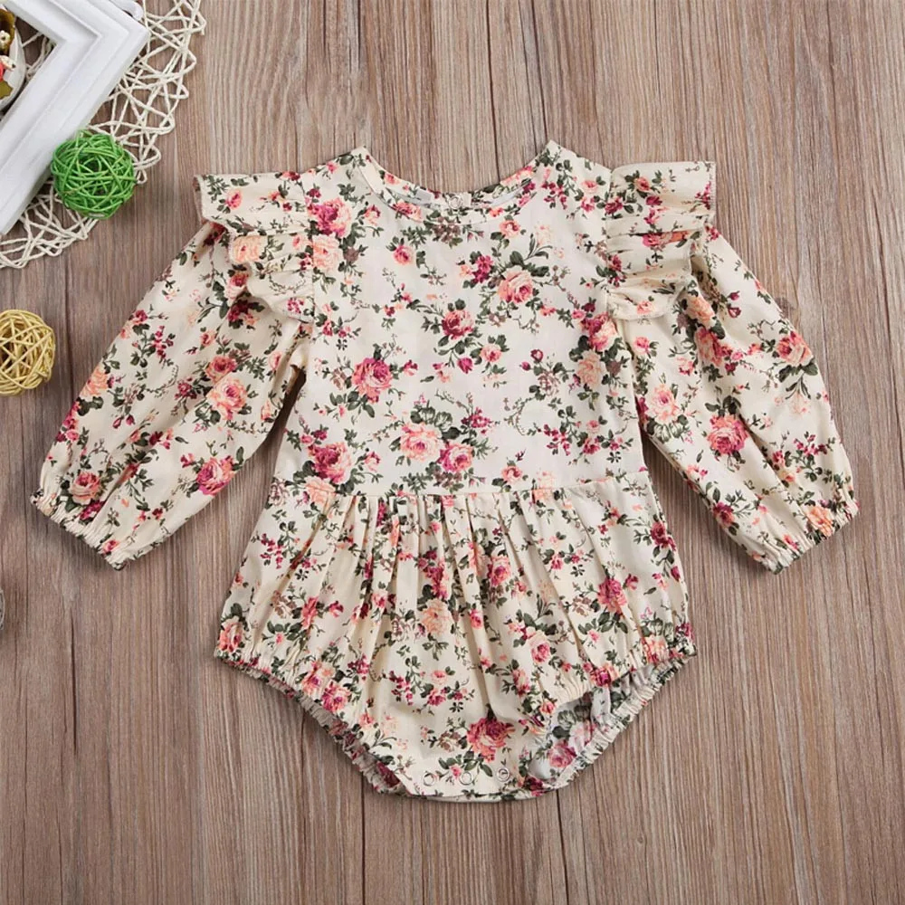 Newborn Infant Baby Girls Floral Print Ruffles Romper Bodysuit Outfits Clothing