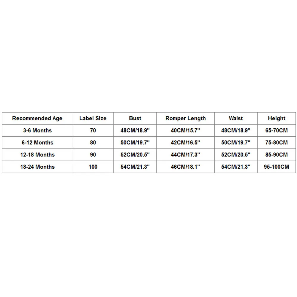 Recommended Age Label Size Bust Romper Length Waist Height