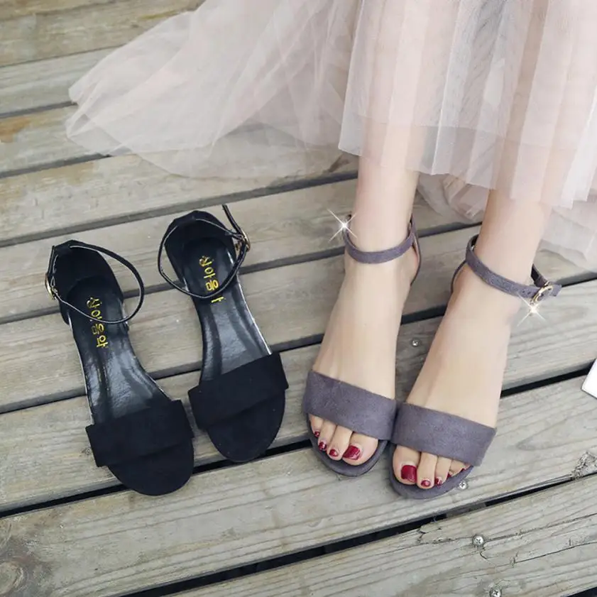 MUQGEW Women Flock Sandals 2018 Fashion Summer Sandals Open Toe Flat Shoes Flops Buckle Strap Sandals zapatos mujer